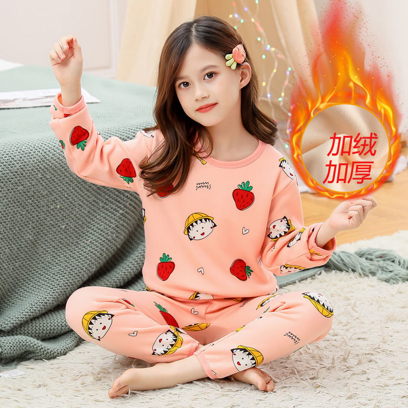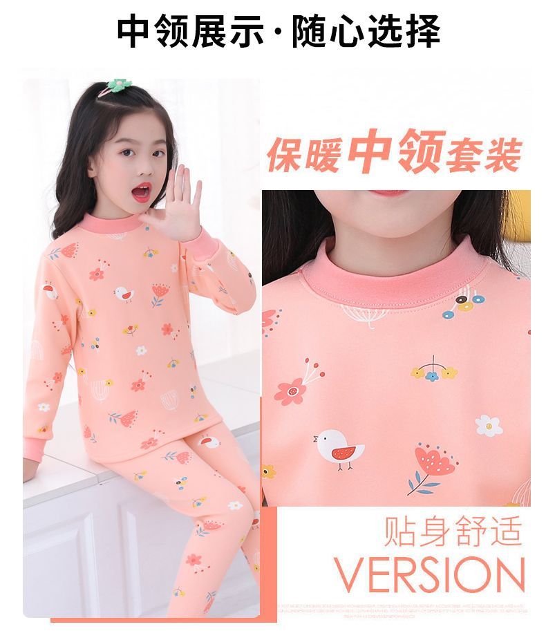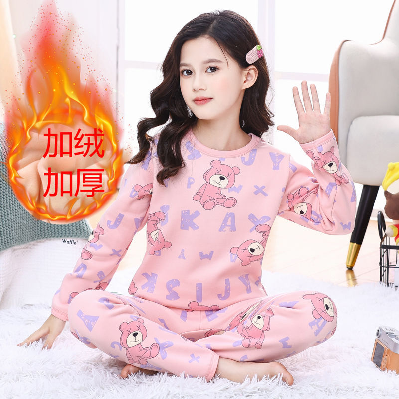 儿童保暖内衣套装加绒加厚冬季男童打底女童小孩宝宝秋衣男孩睡衣pyy15