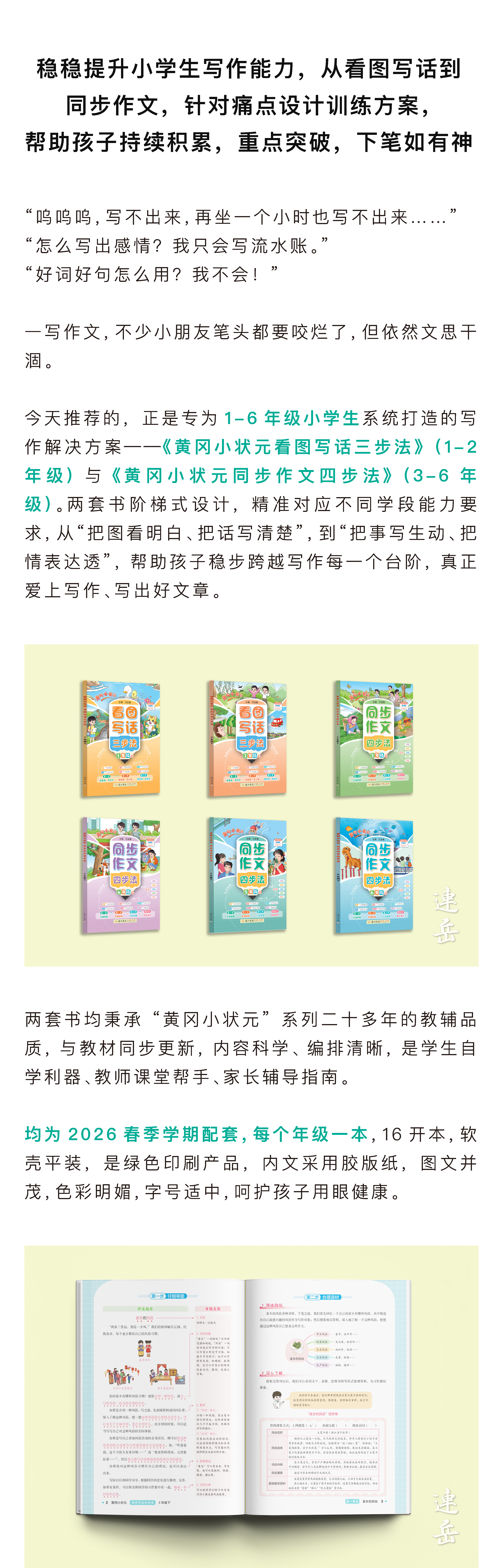 《黄冈小状元看图写话三步法》(1-2年级下)+《黄冈小状元同步作文四步法》(3-6年级下)2026年春