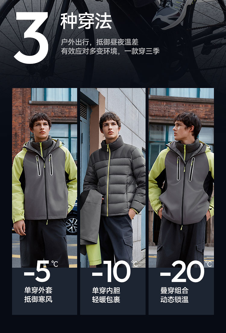 防护羽绒|森马羽绒服男冬装90绒子防风三防2025新款三合一两件套