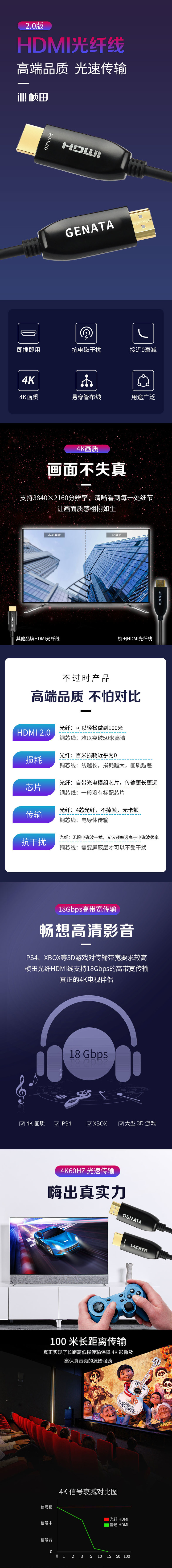 光纤HDMI高清数据线2.0版本 4K电视电脑连接线家庭影院投影高清线10703