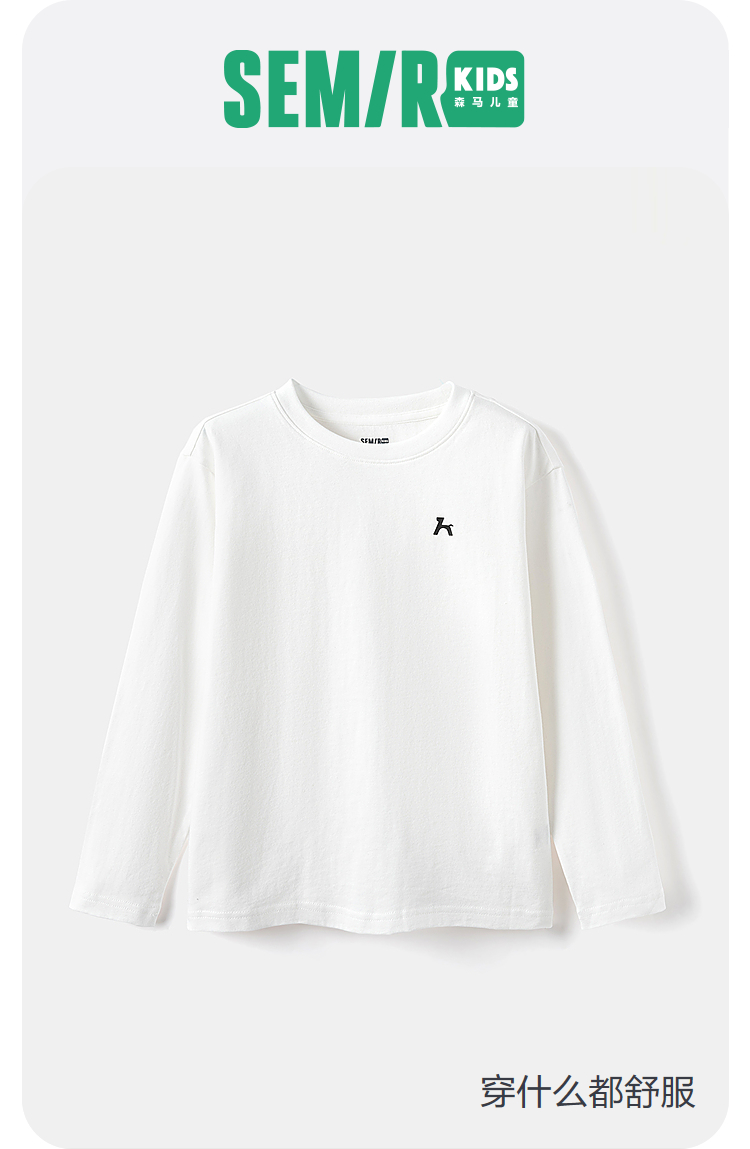 森马儿童长袖T恤2024年新款简约百搭宽松打底衫春秋男童女童内搭