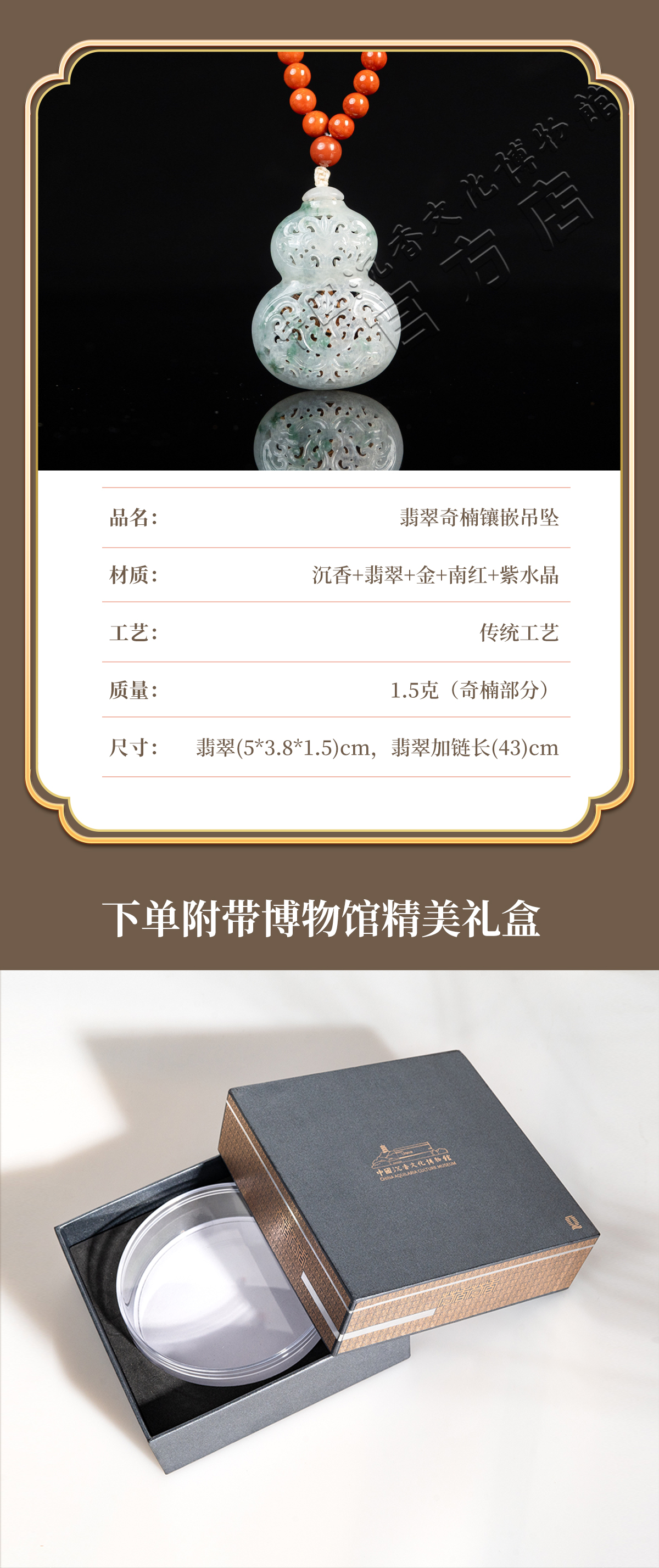 野生奇楠翡翠镶嵌吊坠(葫芦)