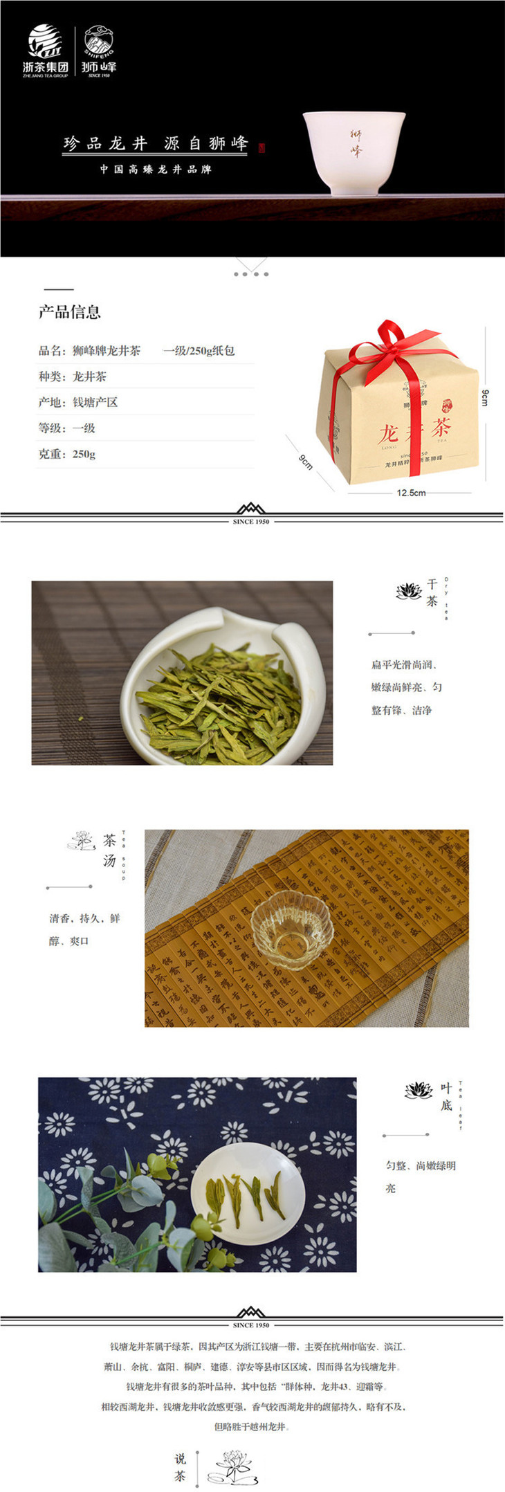 龙井茶 品味一级 250g 纸包 茶叶