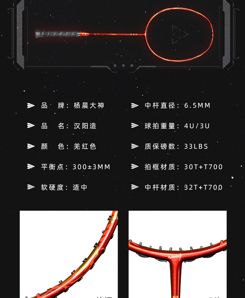 的幸杨晨大神汉阳造专业进攻耐用超轻羽毛球拍全碳素纤维单拍