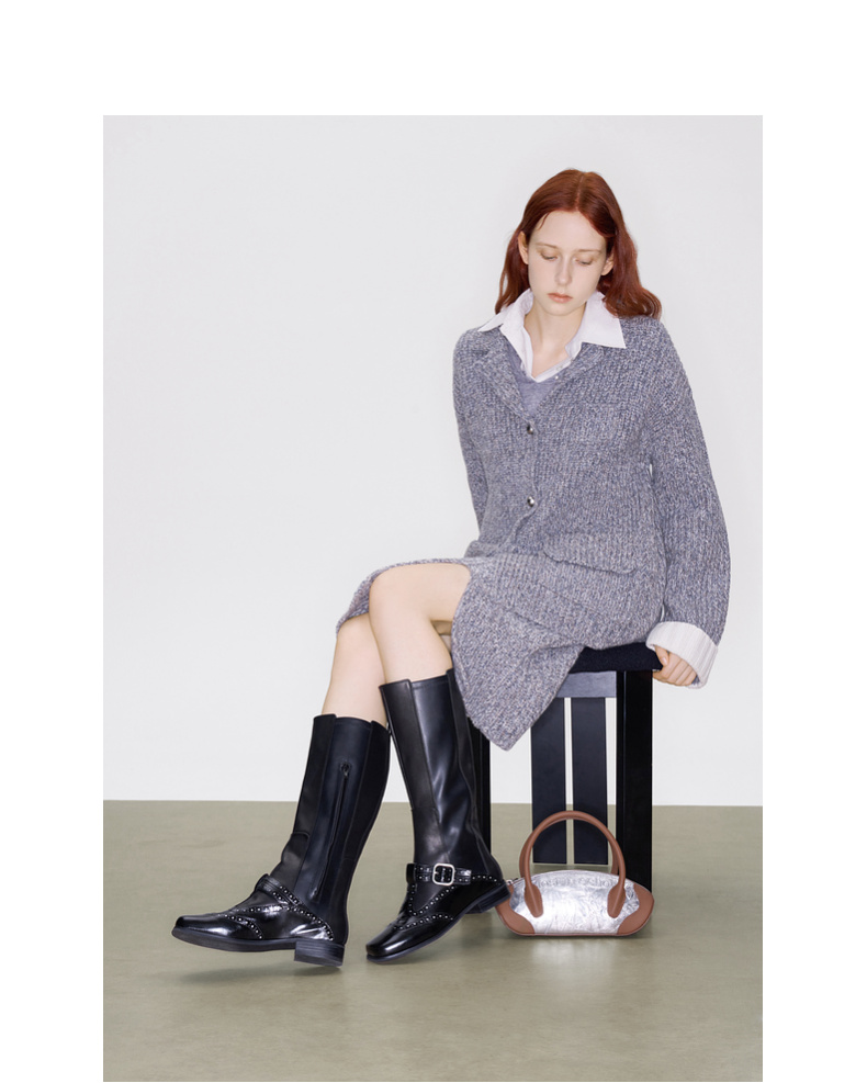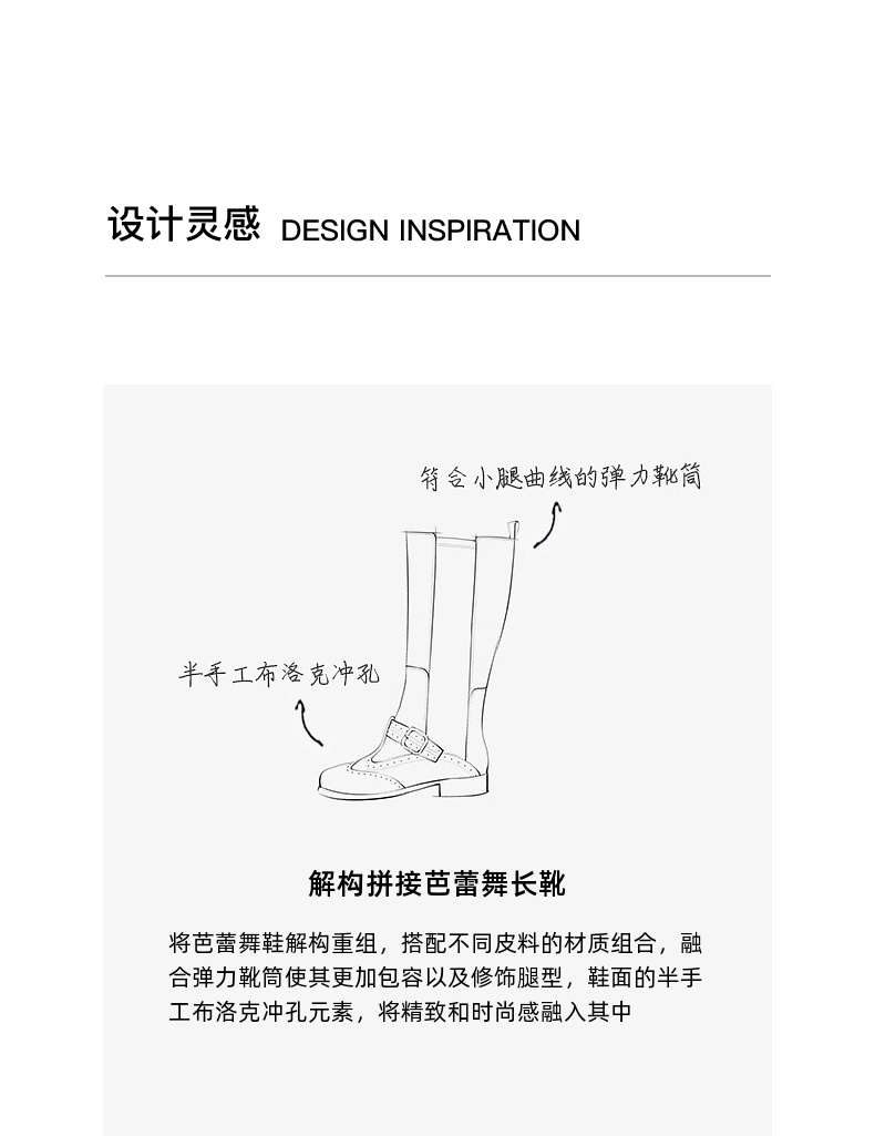 lost in echo2025早秋新款独特解构拼接布洛克芭蕾舞长靴弹力靴女
