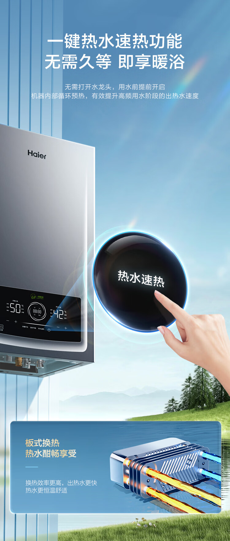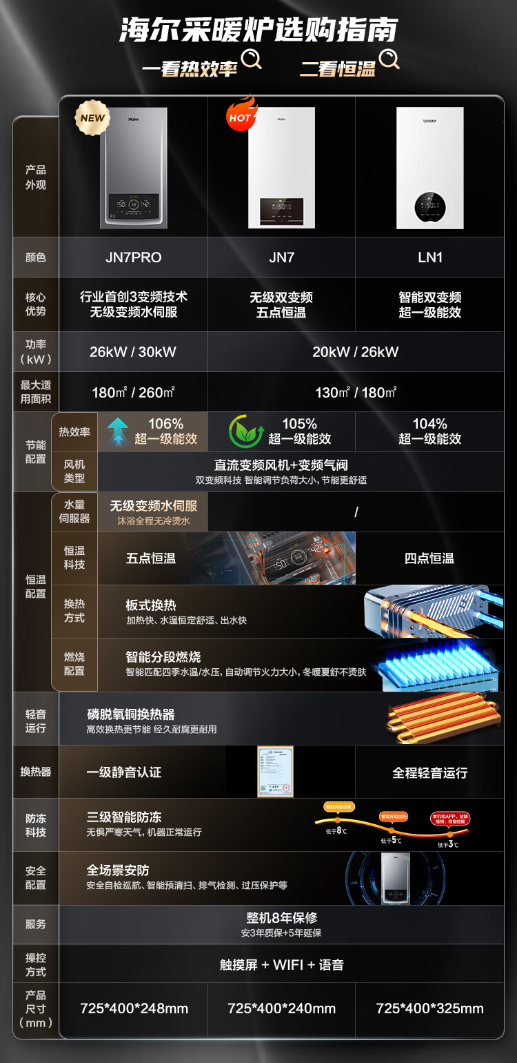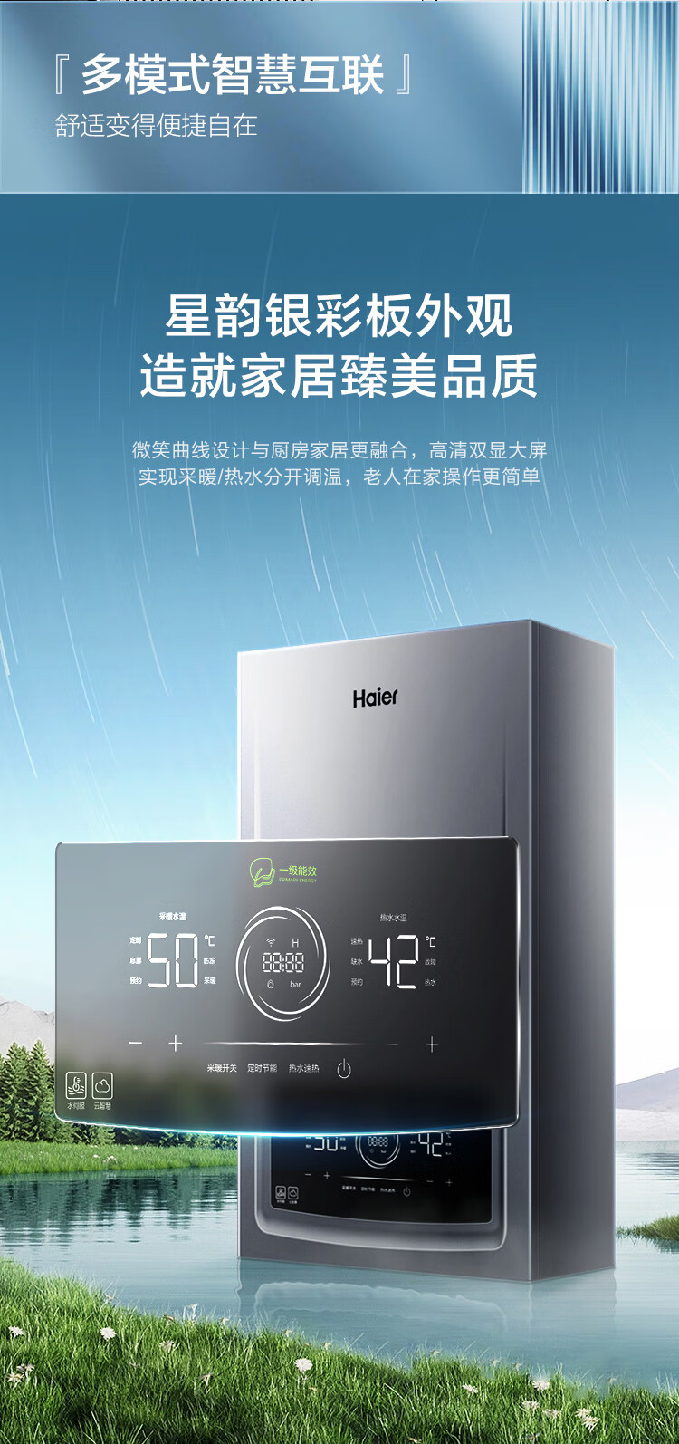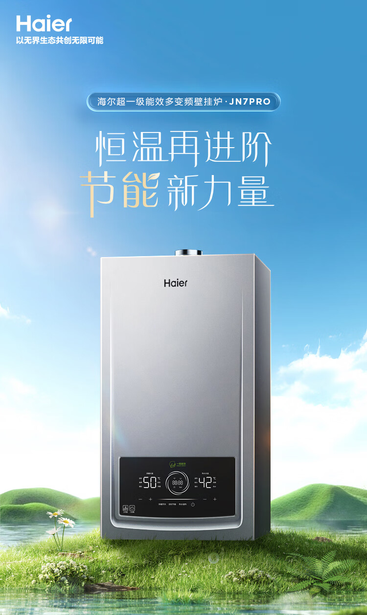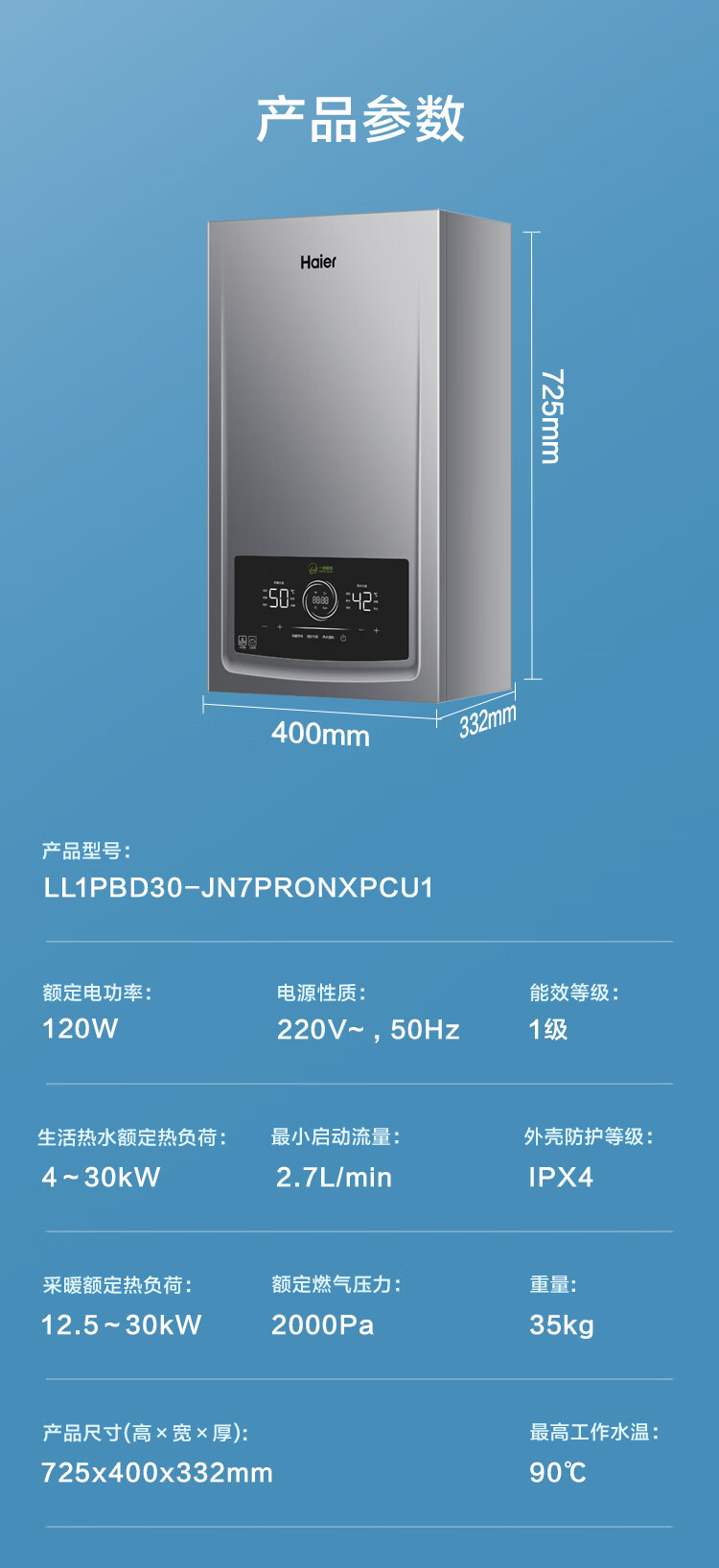 海尔(Haier)超一级能效冷凝无级变频水伺服燃气壁挂炉天然气三变频静音采暖炉热水器以旧换新LL1PBD30-JN7PRO