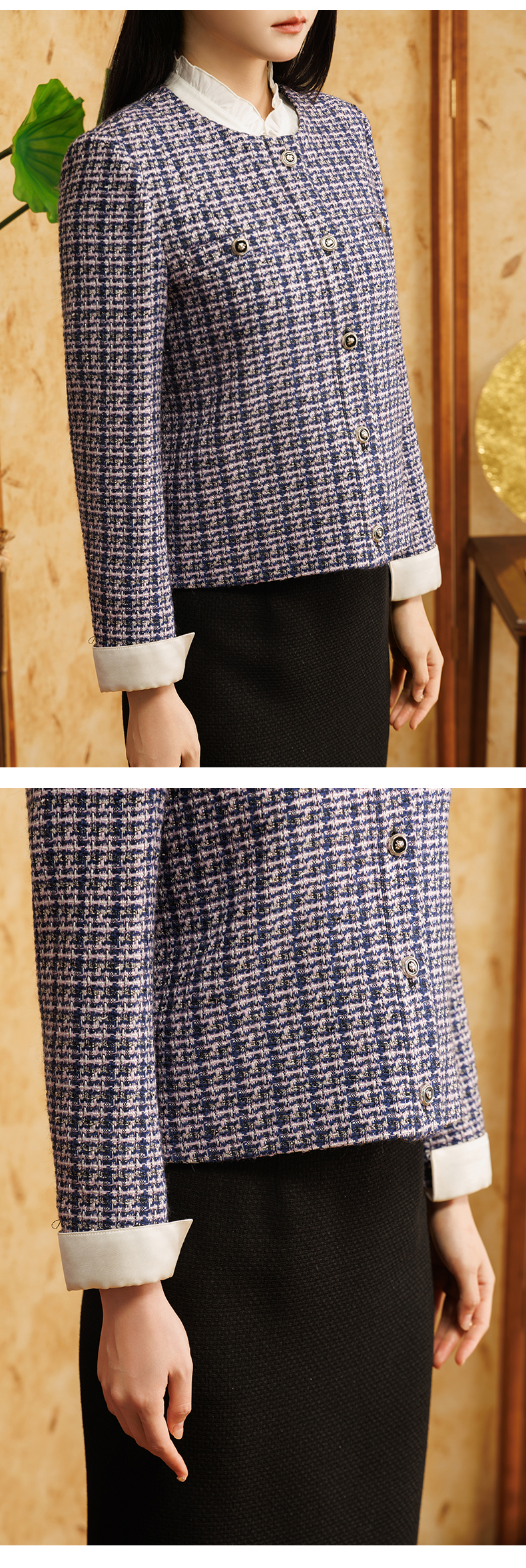 【积分兑换】阿菁娜经典藏蓝色双排染色贝壳扣H型薄款醋酸真丝外套A27X107032