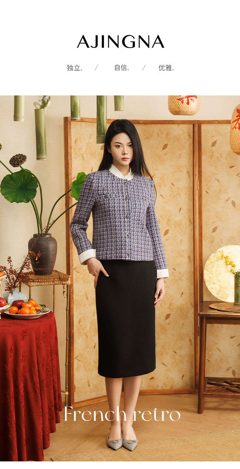 【商场同款】阿菁娜2025春季新款箱型小香风上衣A30C107032