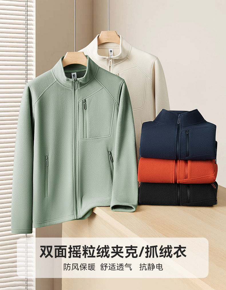 340G防风抓绒双面摇粒绒立领夹克外套 秋冬季新款抗静电开衫外套