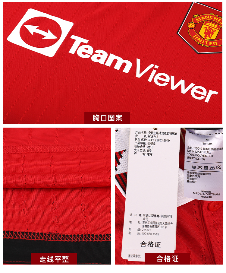 ADIDAS/阿迪达斯 22-23赛季曼联主场球员版长袖比赛球衣HN5748