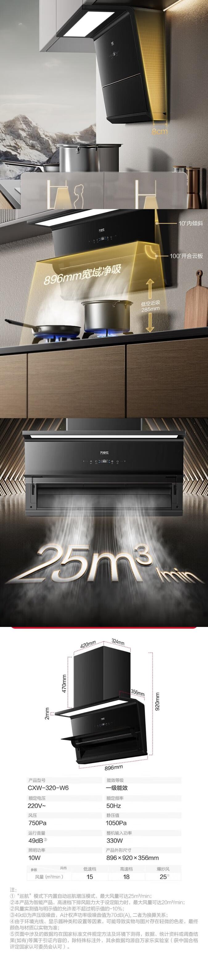 万家乐超薄近吸油烟机(510194 ) 25立方变频大吸力 零动净烟宽域拢烟 CXW-320-W6