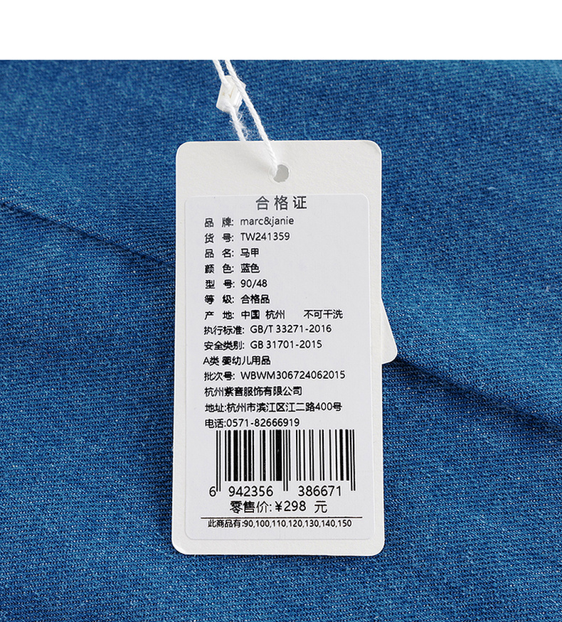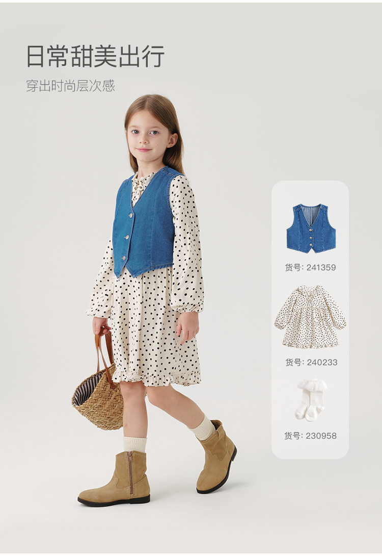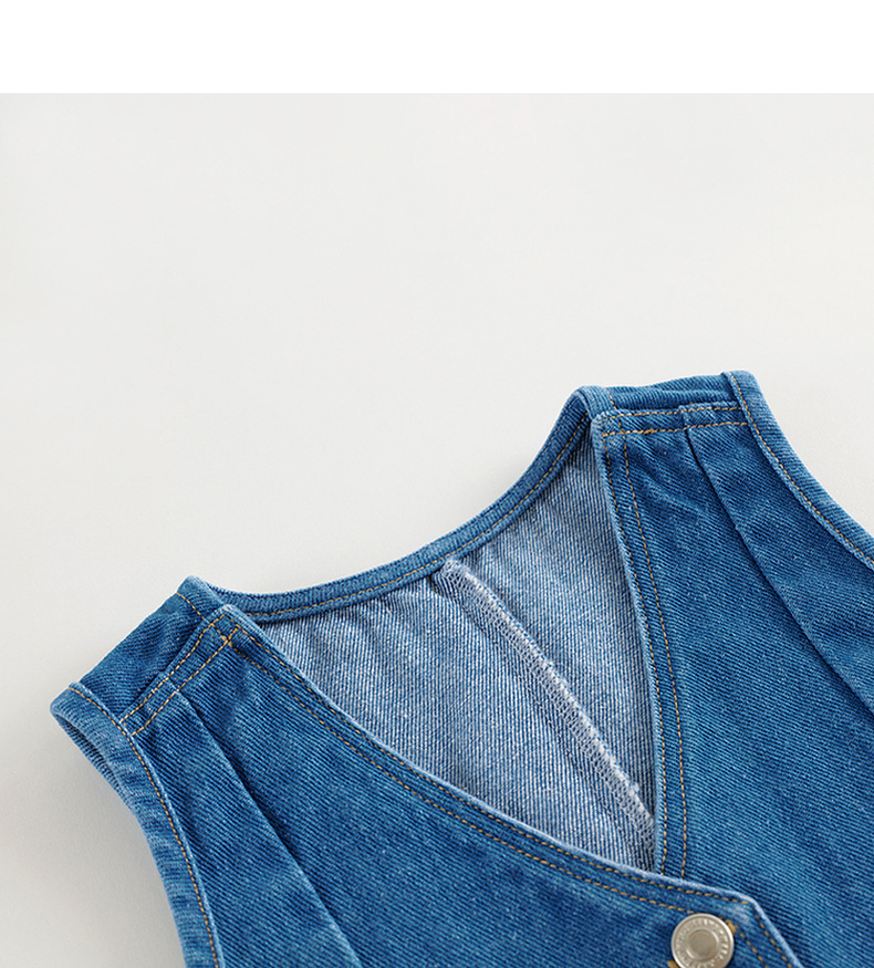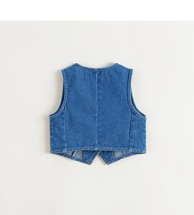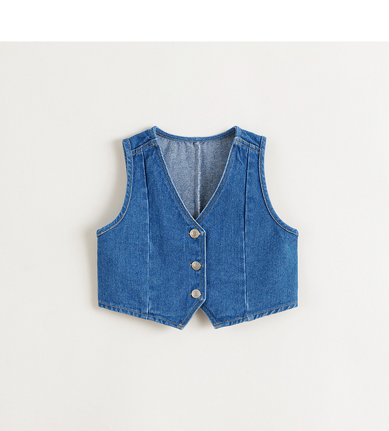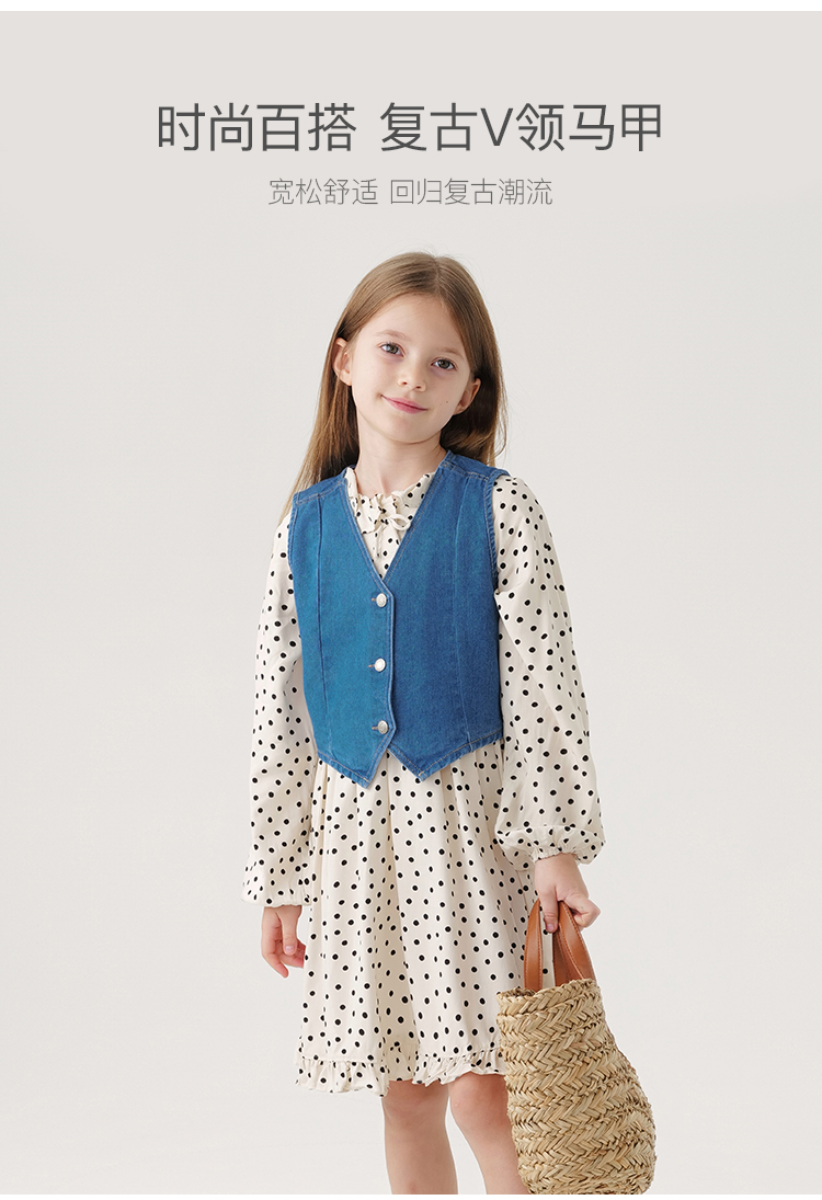 马克珍妮2024年秋装新款 女童百搭复古V领纯棉牛仔马甲 241359
