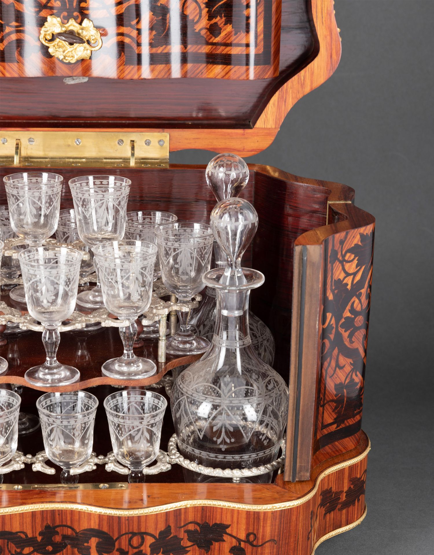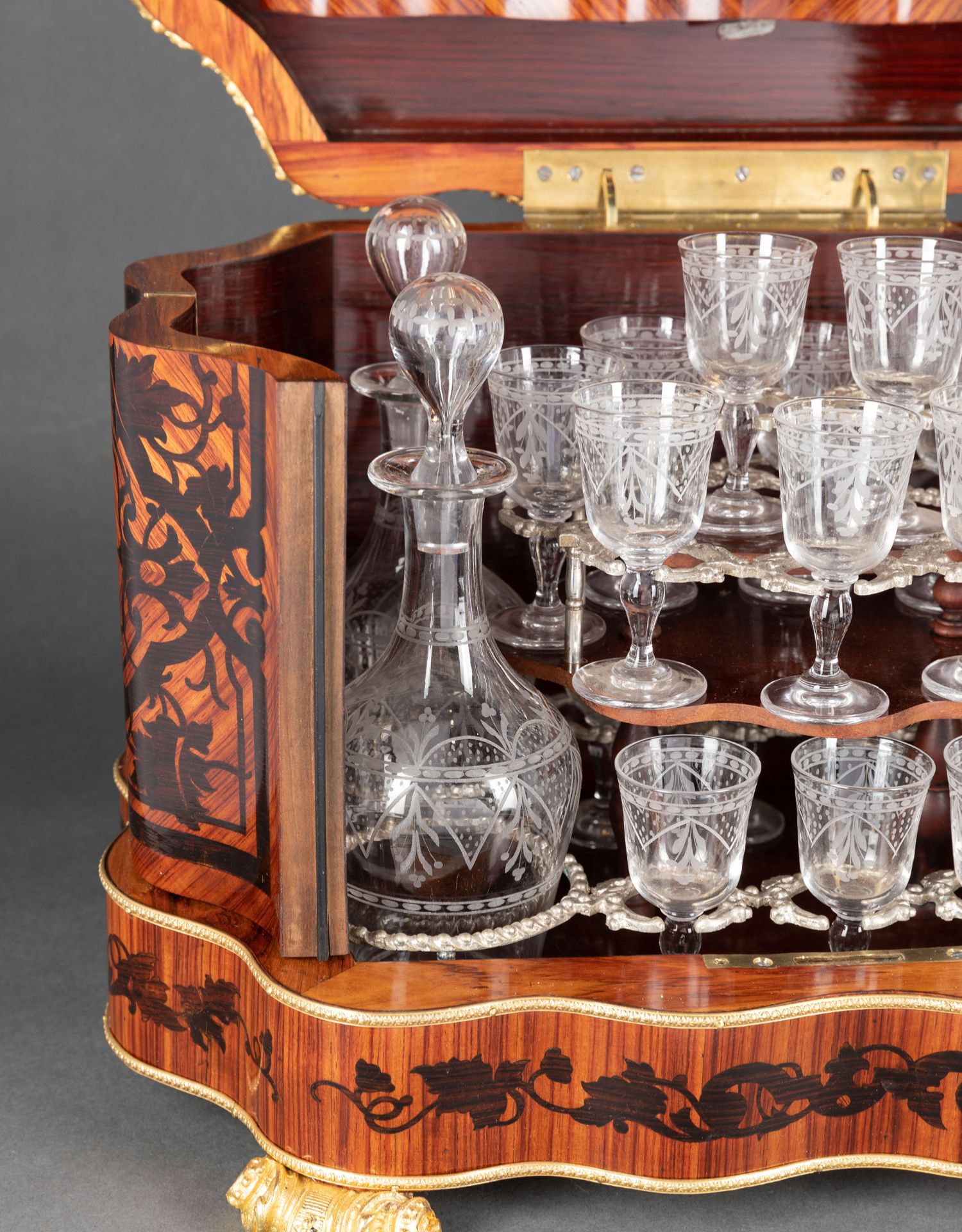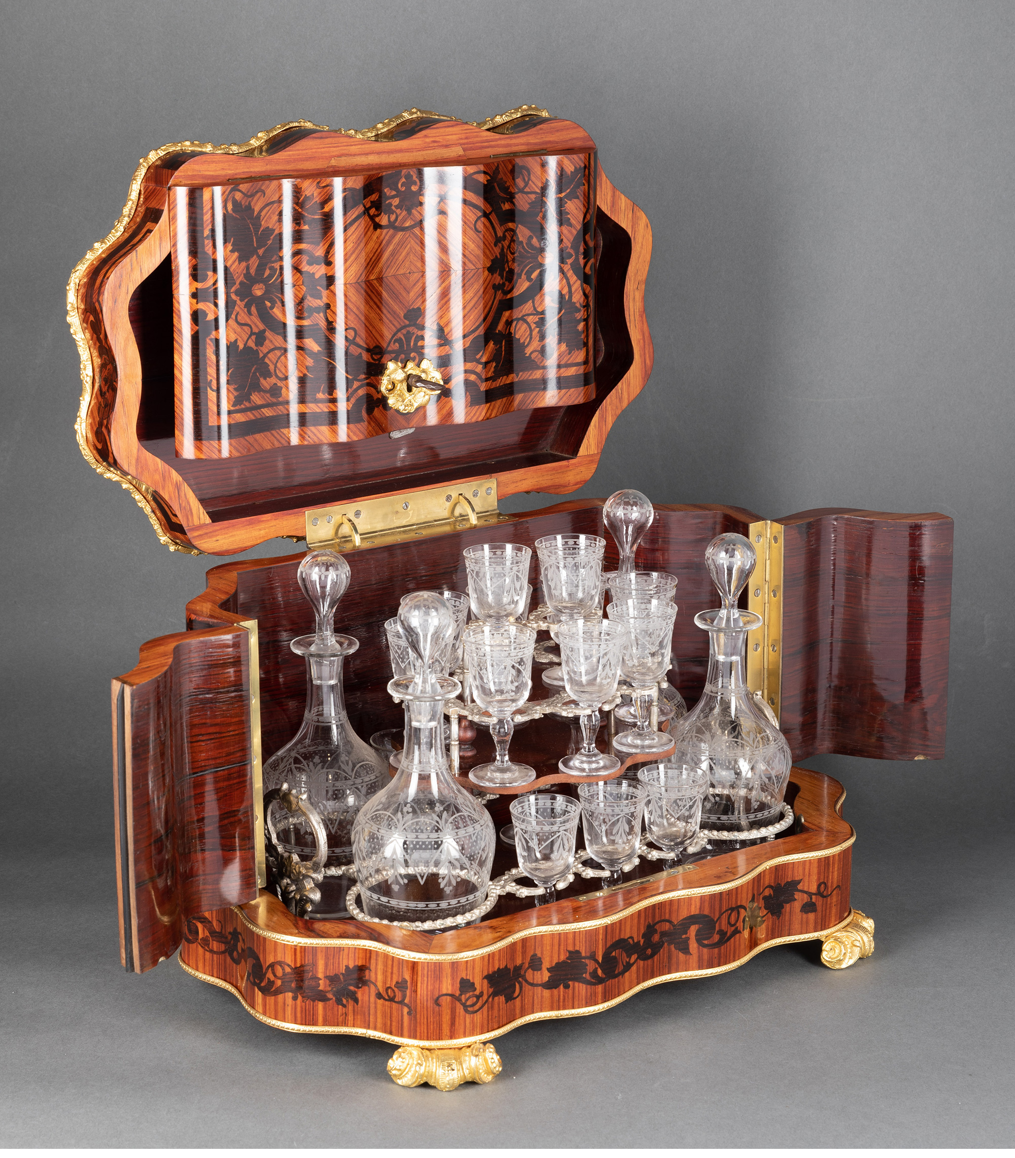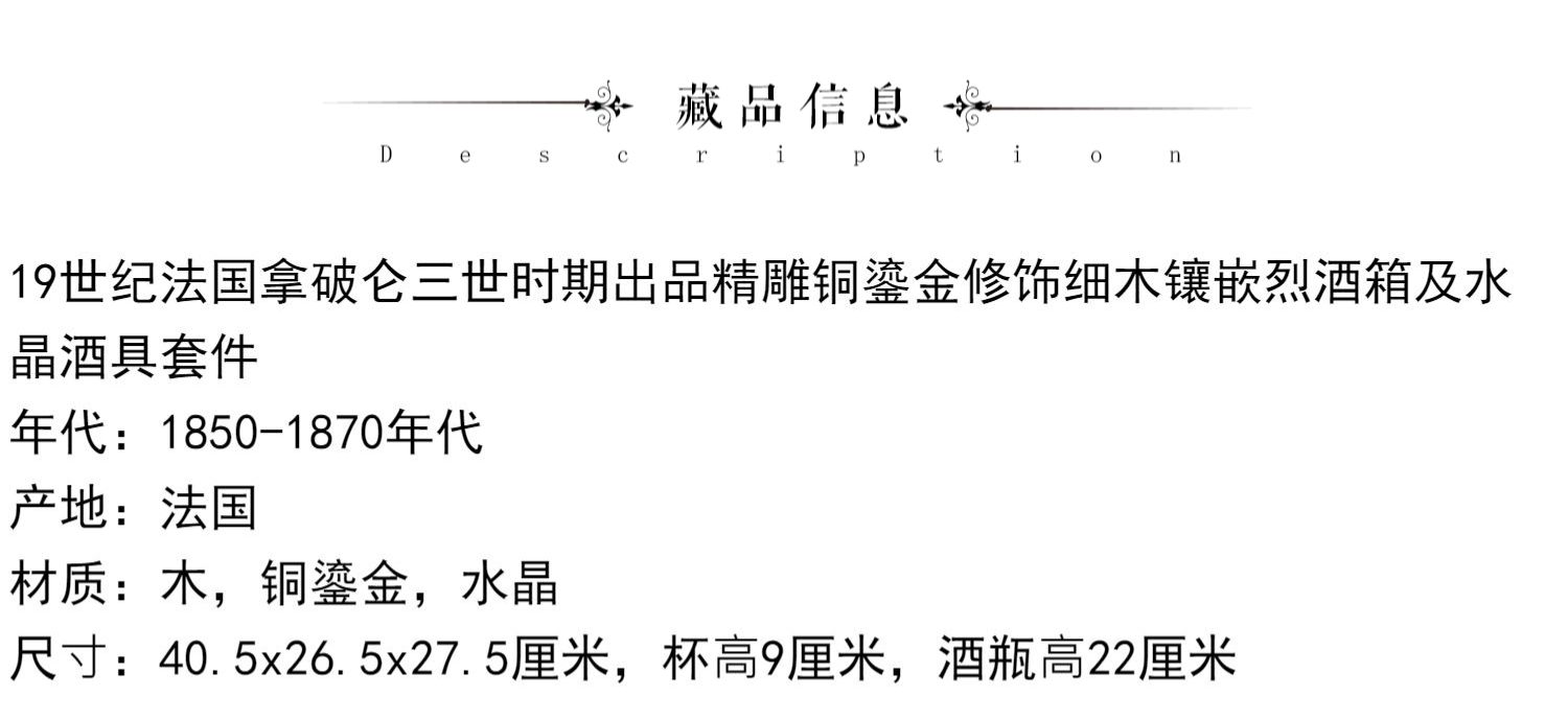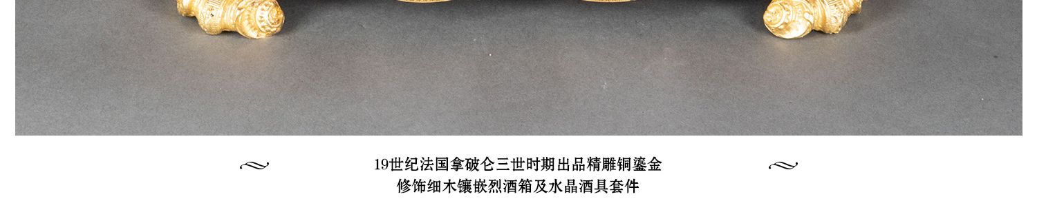 独角鹿西洋古董法国铜鎏金细木镶嵌烈酒箱水晶酒瓶酒杯酒具套装