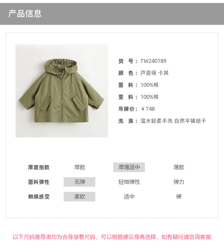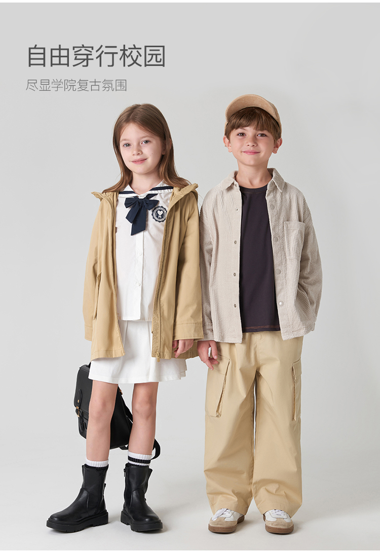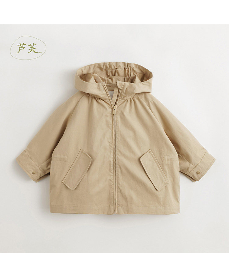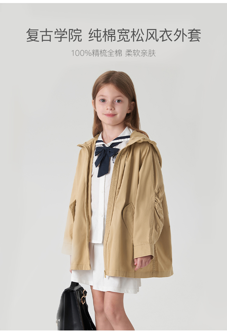 【马克珍妮 芦芙】女童纯棉宽松连帽风衣外套儿童春装新款240189
