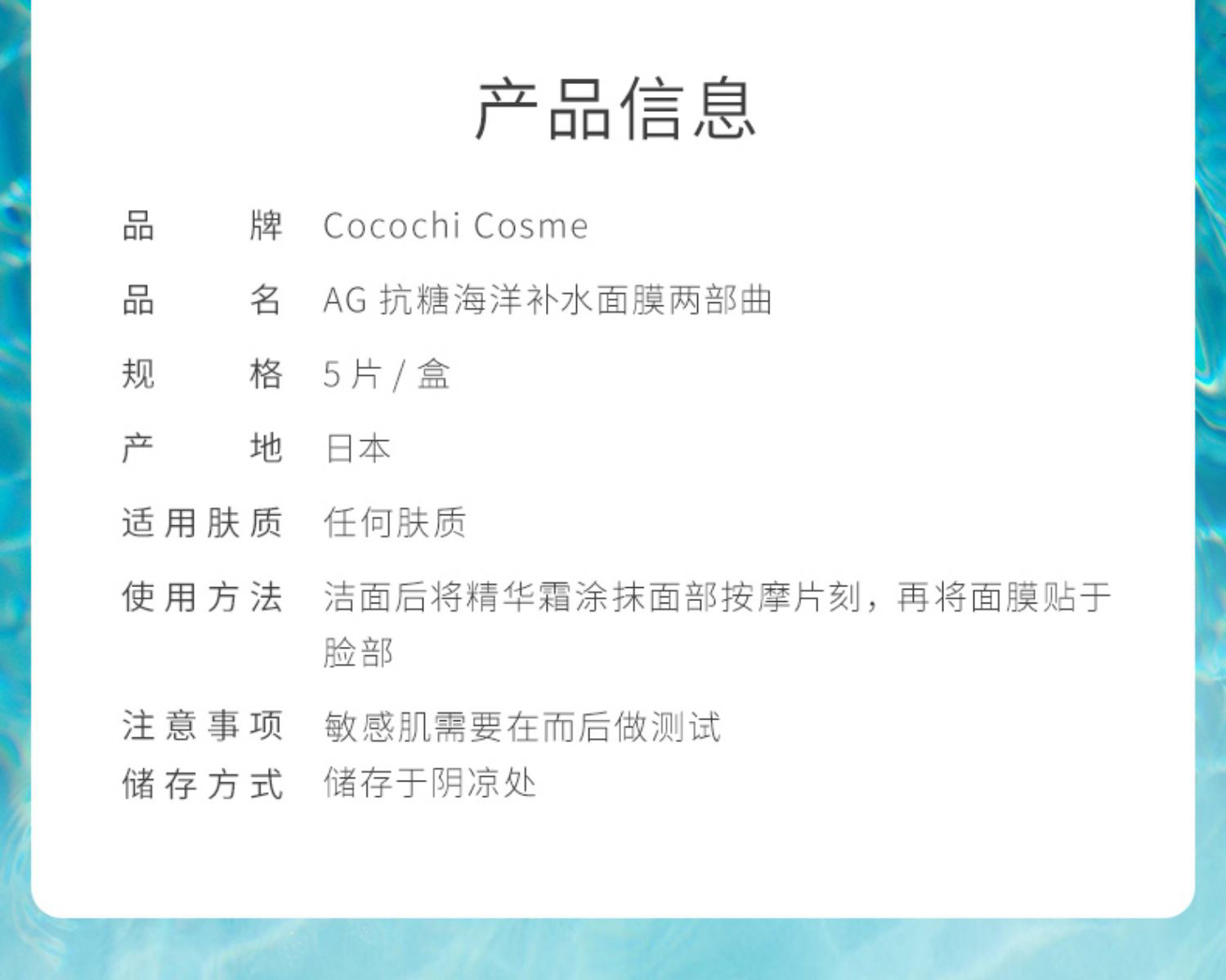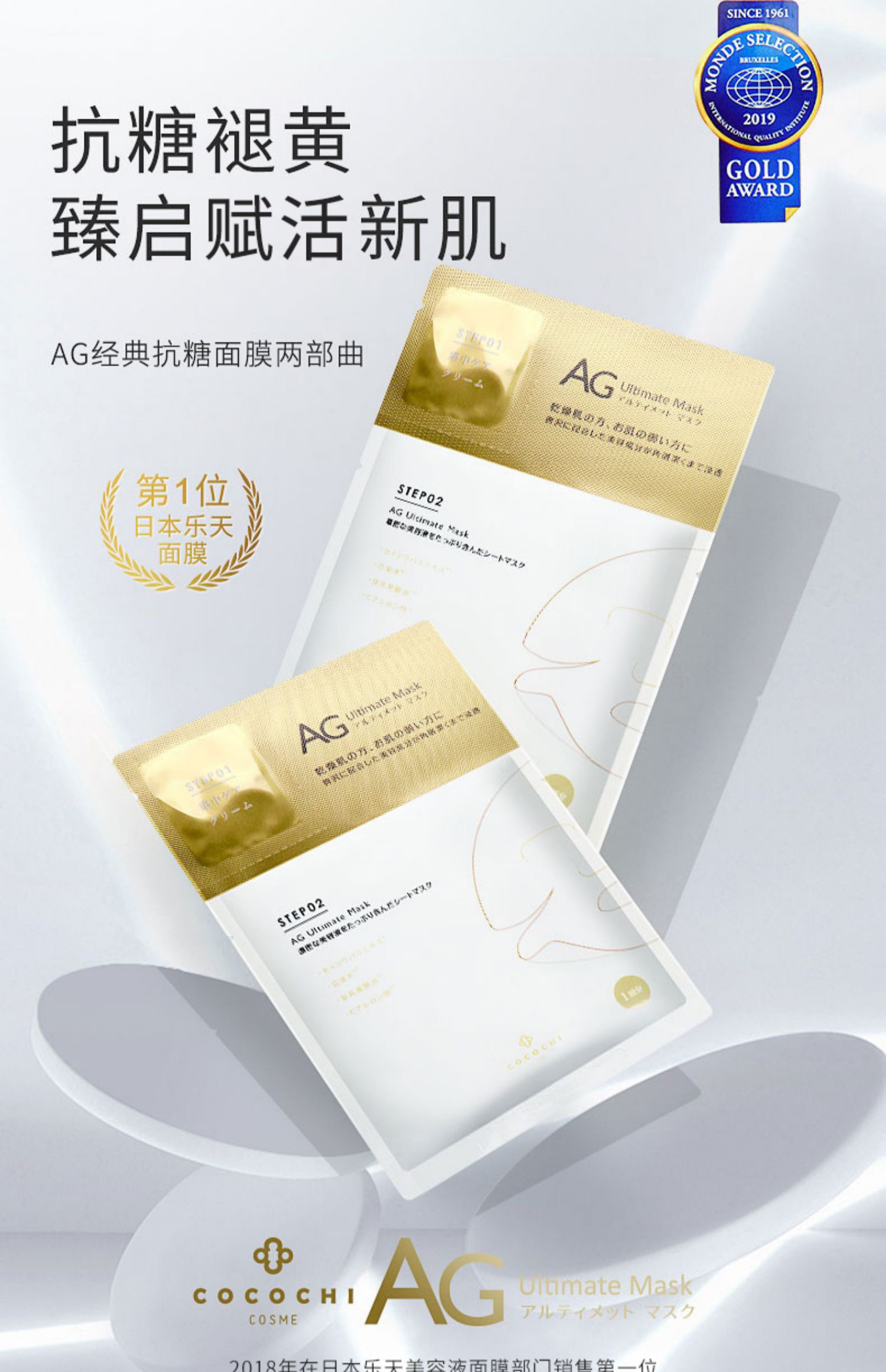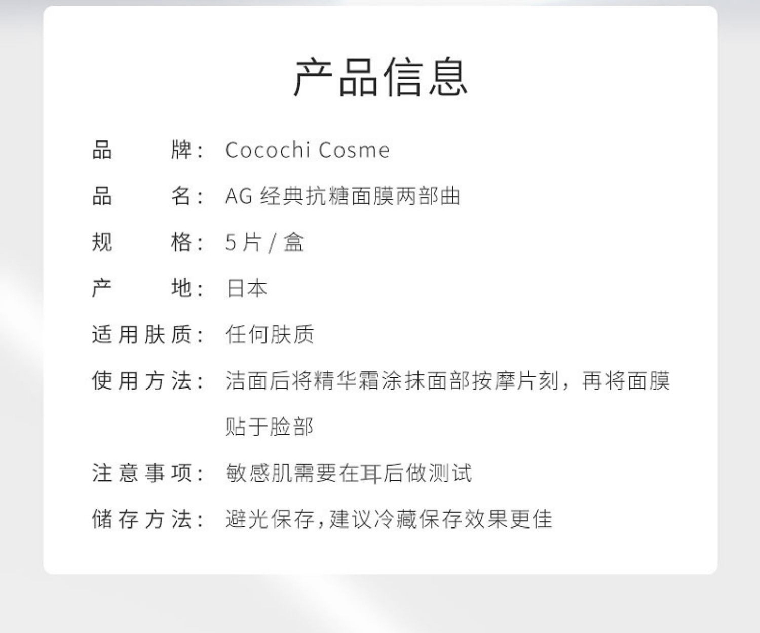 日本 Cocochi蔻蔻琪 AG抗糖提亮祛黄面膜两部曲 5片