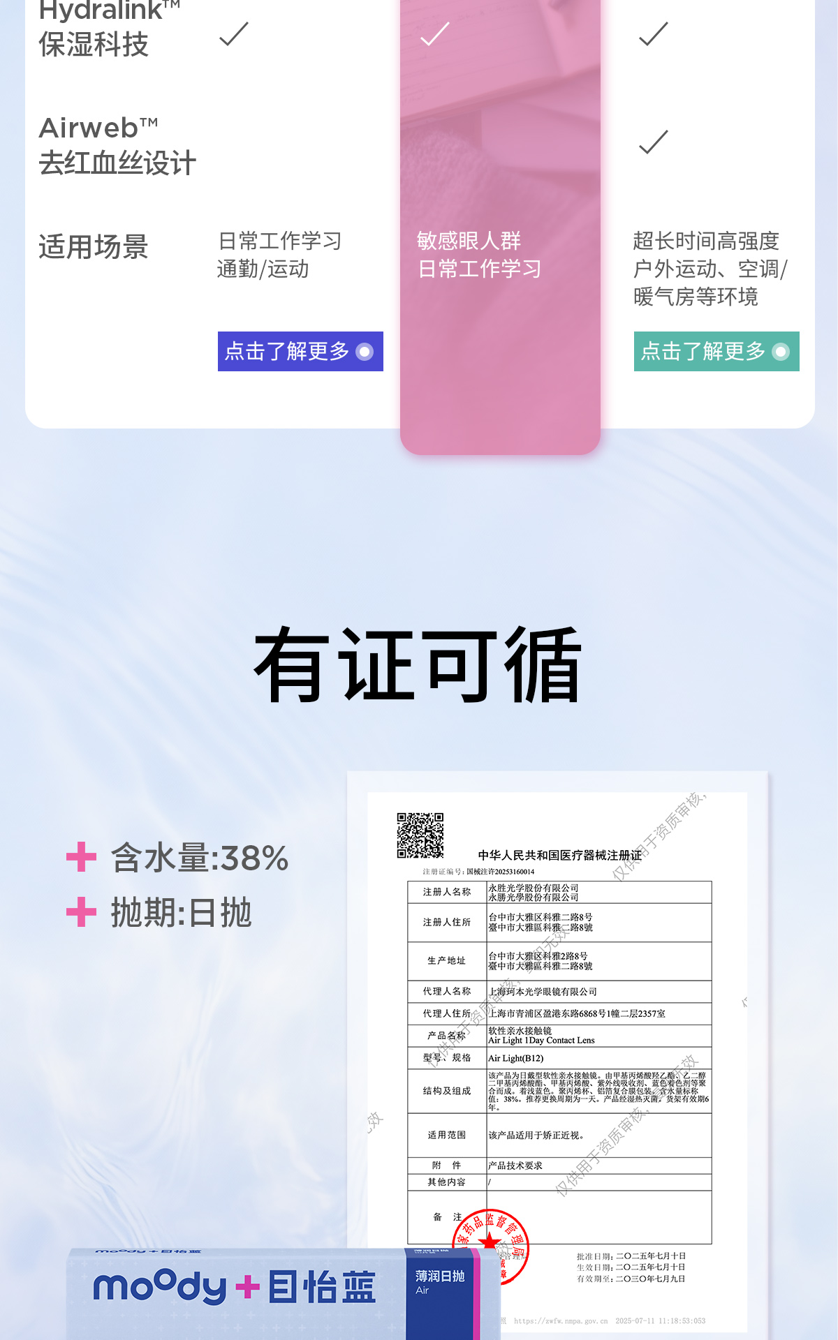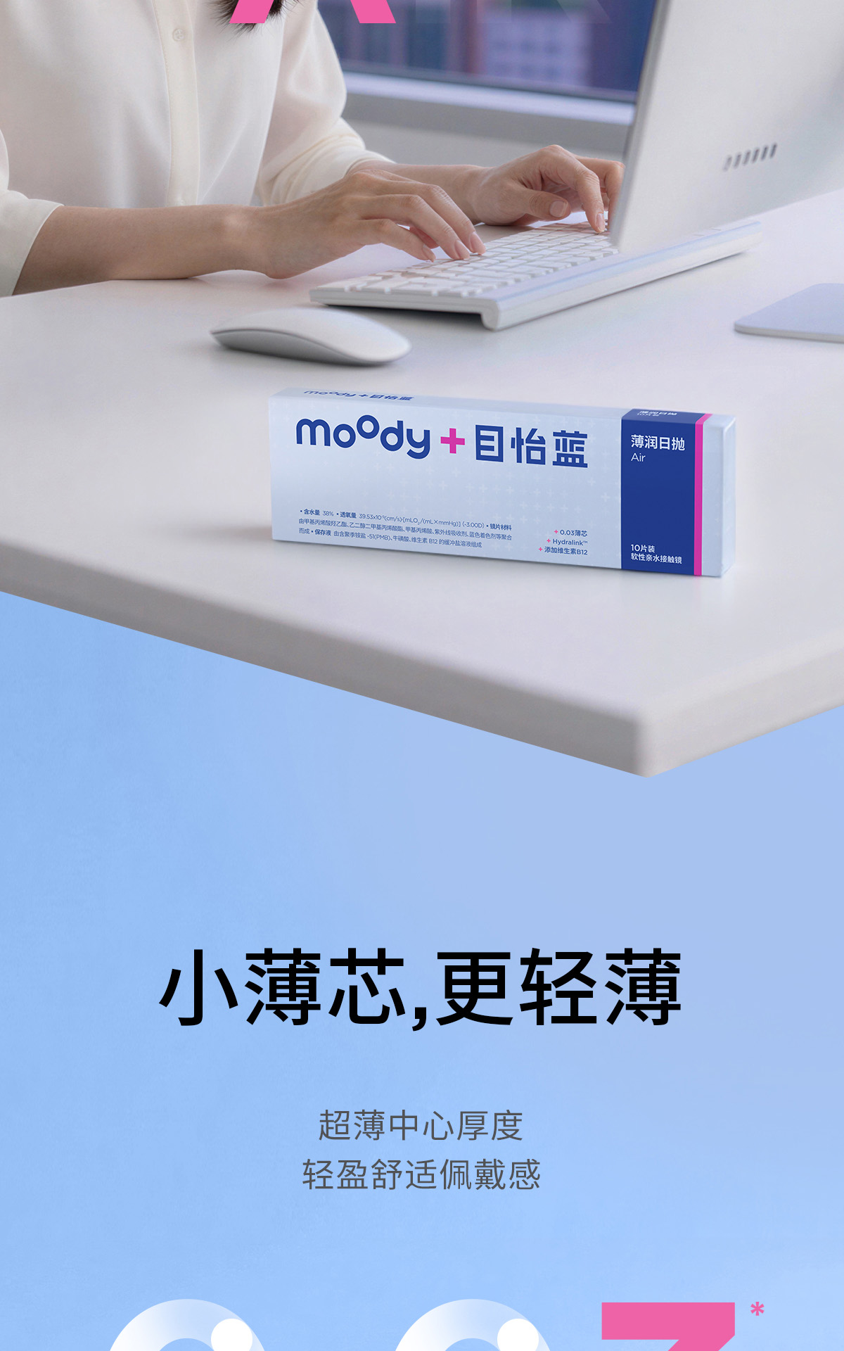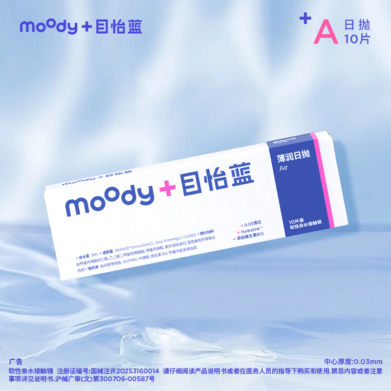 【敏感眼专研】moodyblue 薄润系列敏感眼舒适0.03mm 日抛 隐形眼镜 10片装