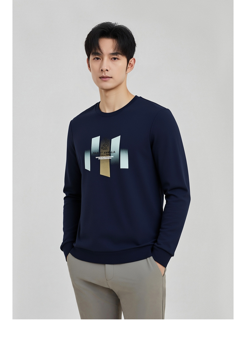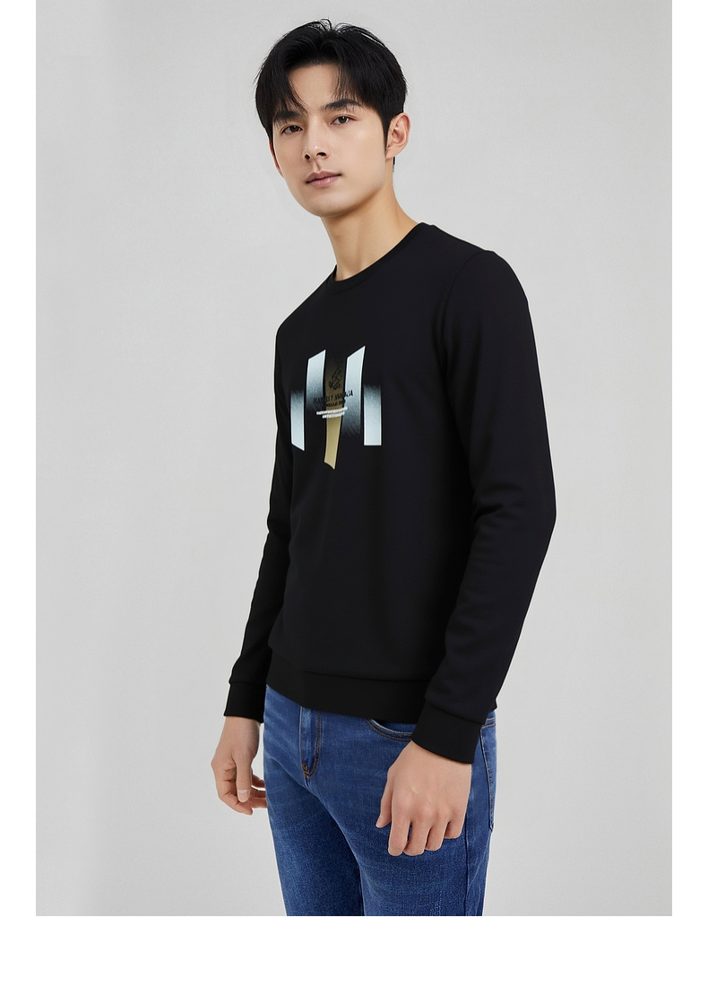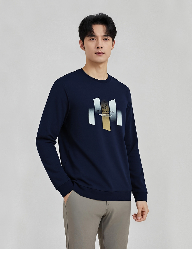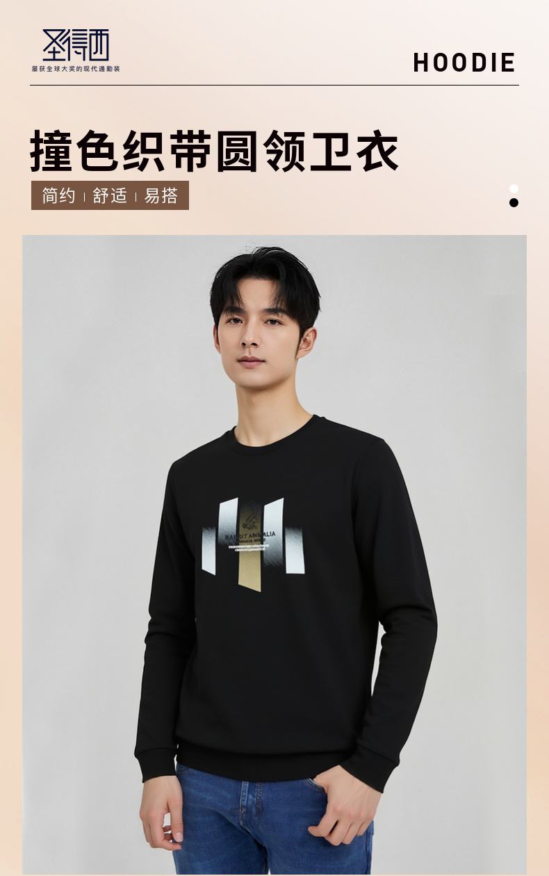 圣得西男士潮流印花圆领卫衣2025秋季新款时尚百搭上衣
