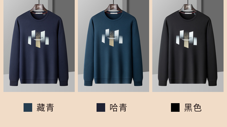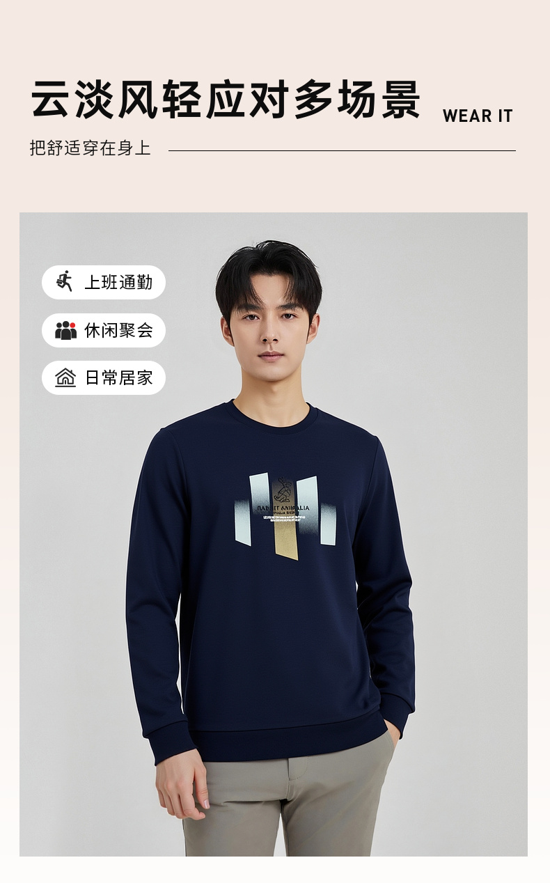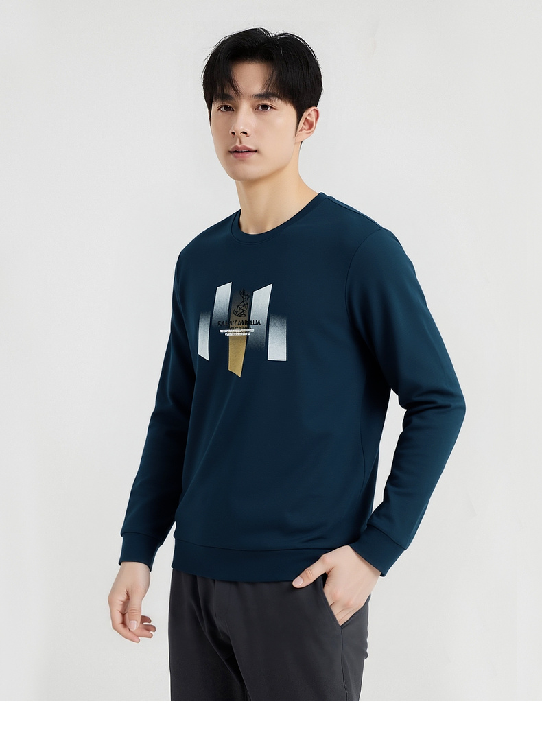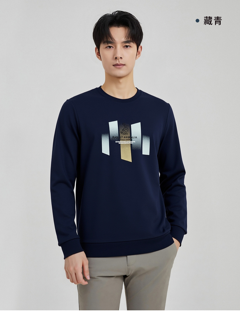 圣得西男士潮流印花圆领卫衣2025秋季新款时尚百搭上衣