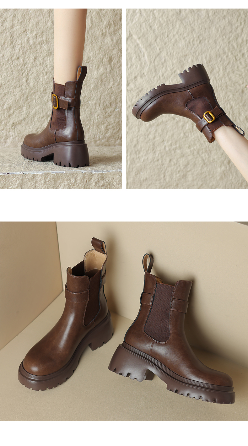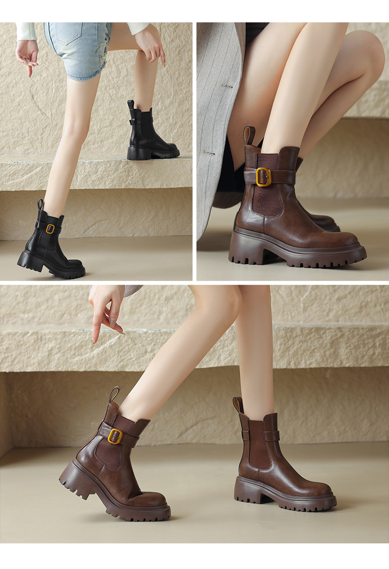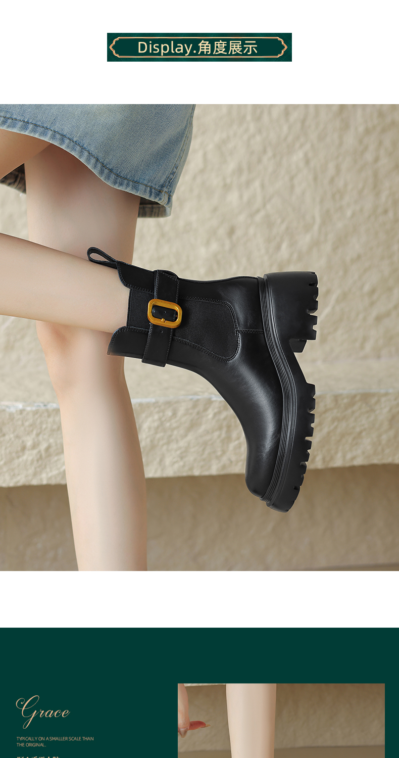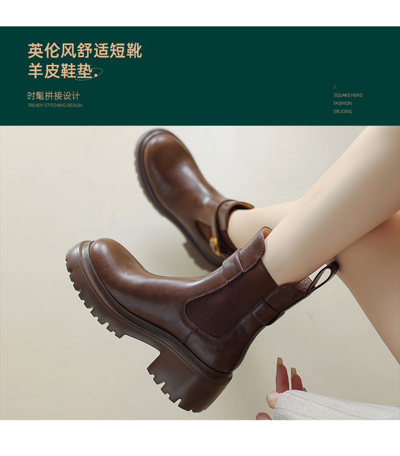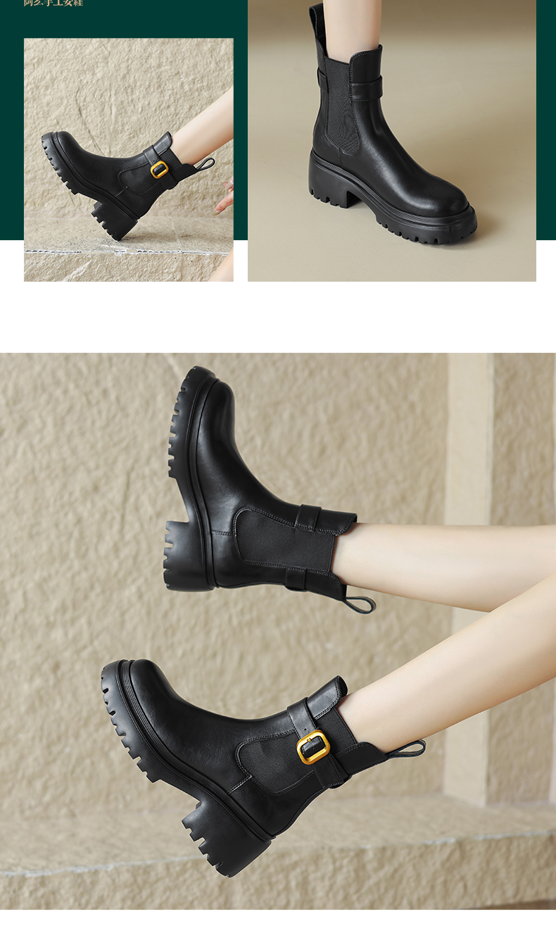 阿么手工女鞋厚底短筒真皮靴子英伦风时尚2025新款时装靴百搭秋冬 商品图4