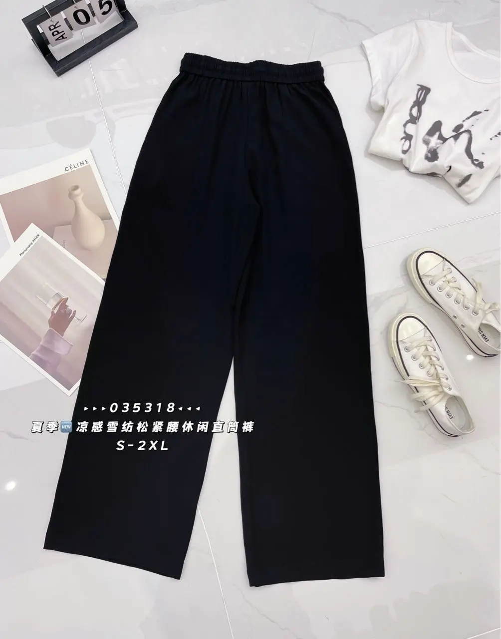 L2243#半松紧腰休闲直筒裤
