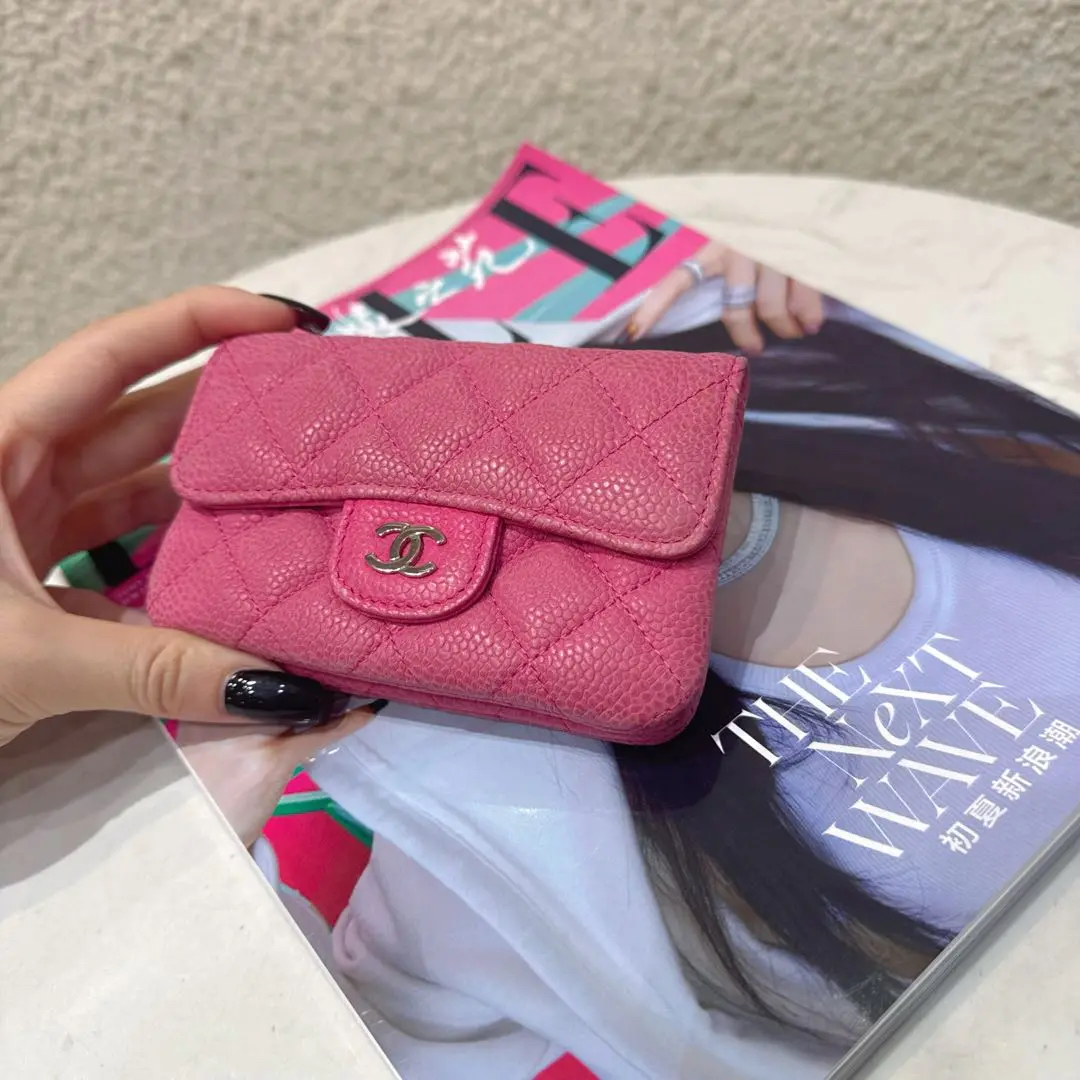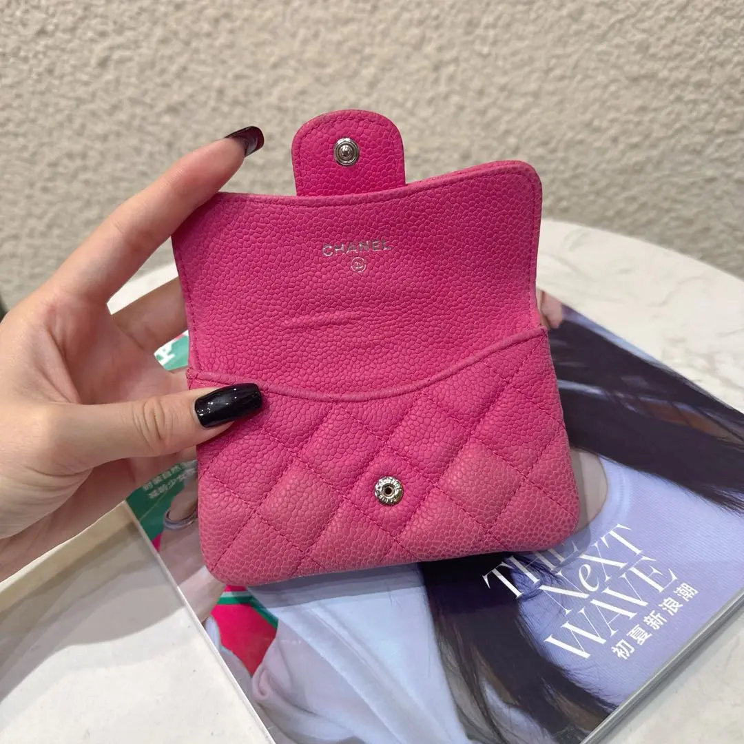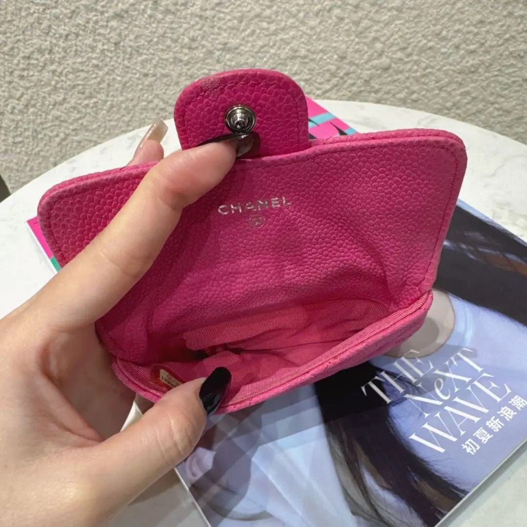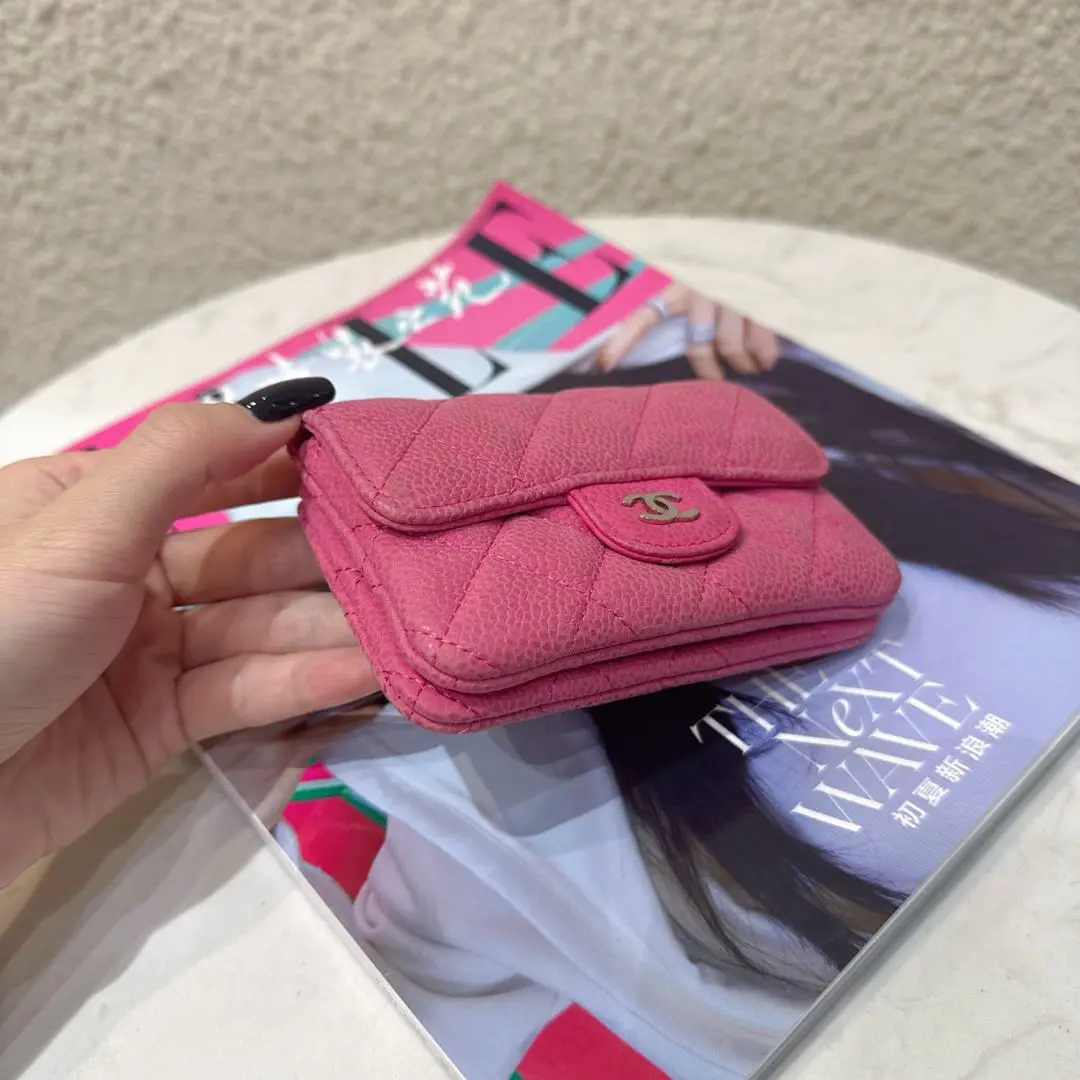 【商品详情】正品二手 Chanel CF 粉色 银扣 荔枝纹牛皮 钱包🥖95新 13*8 镭射17开。包身正常使用感。个性甜美 多巴胺色系