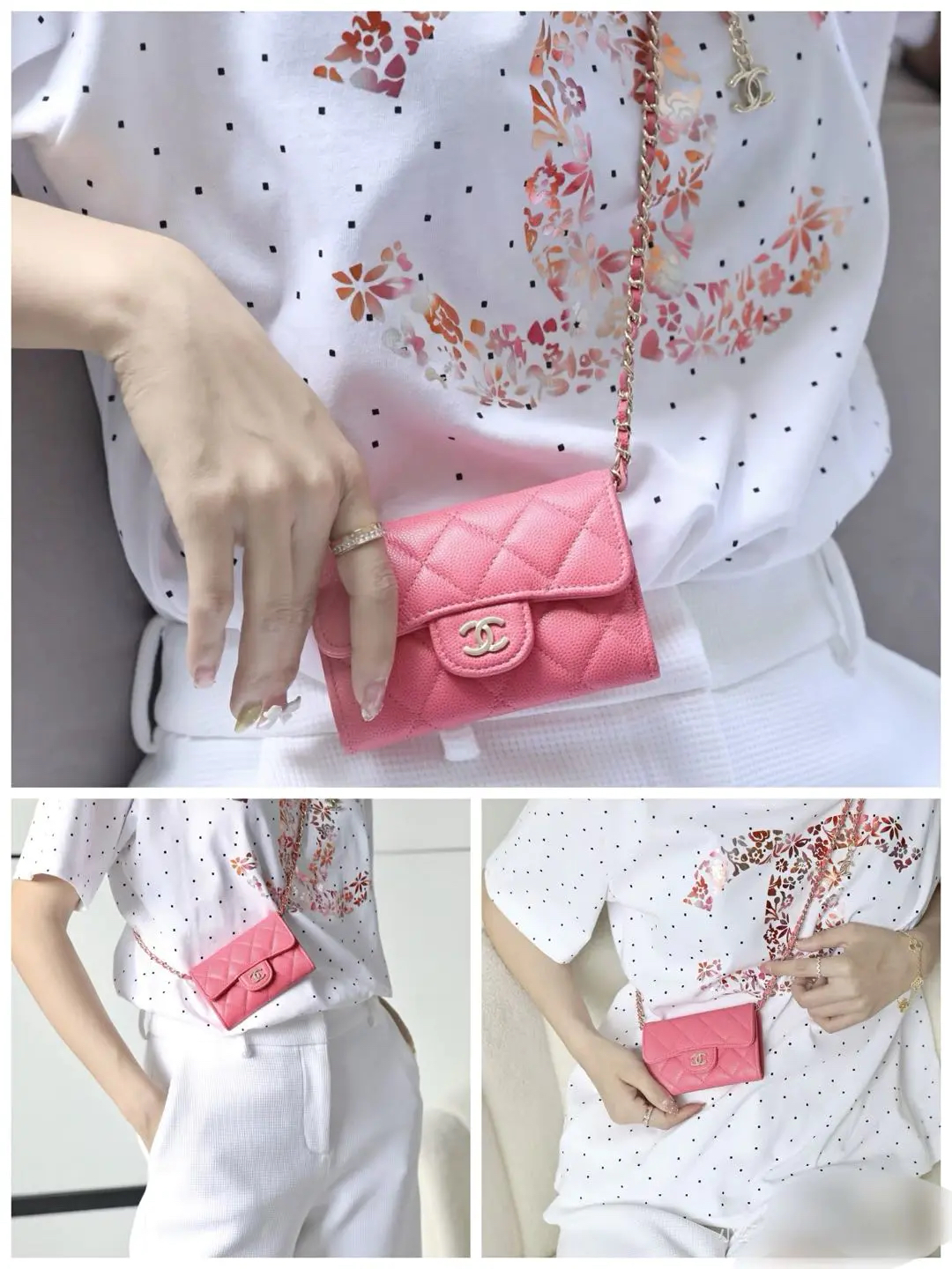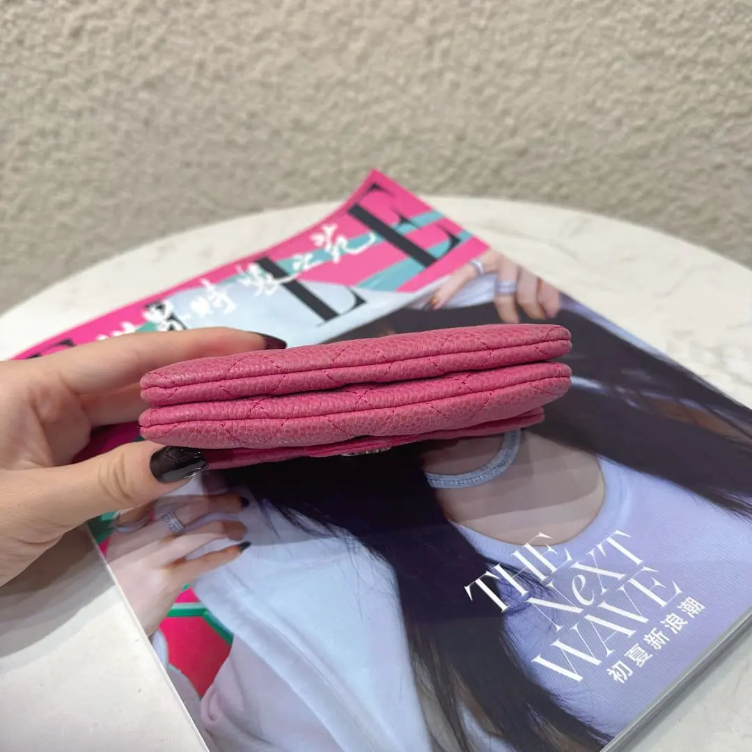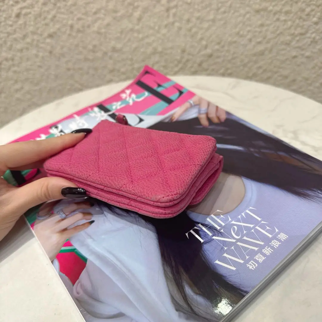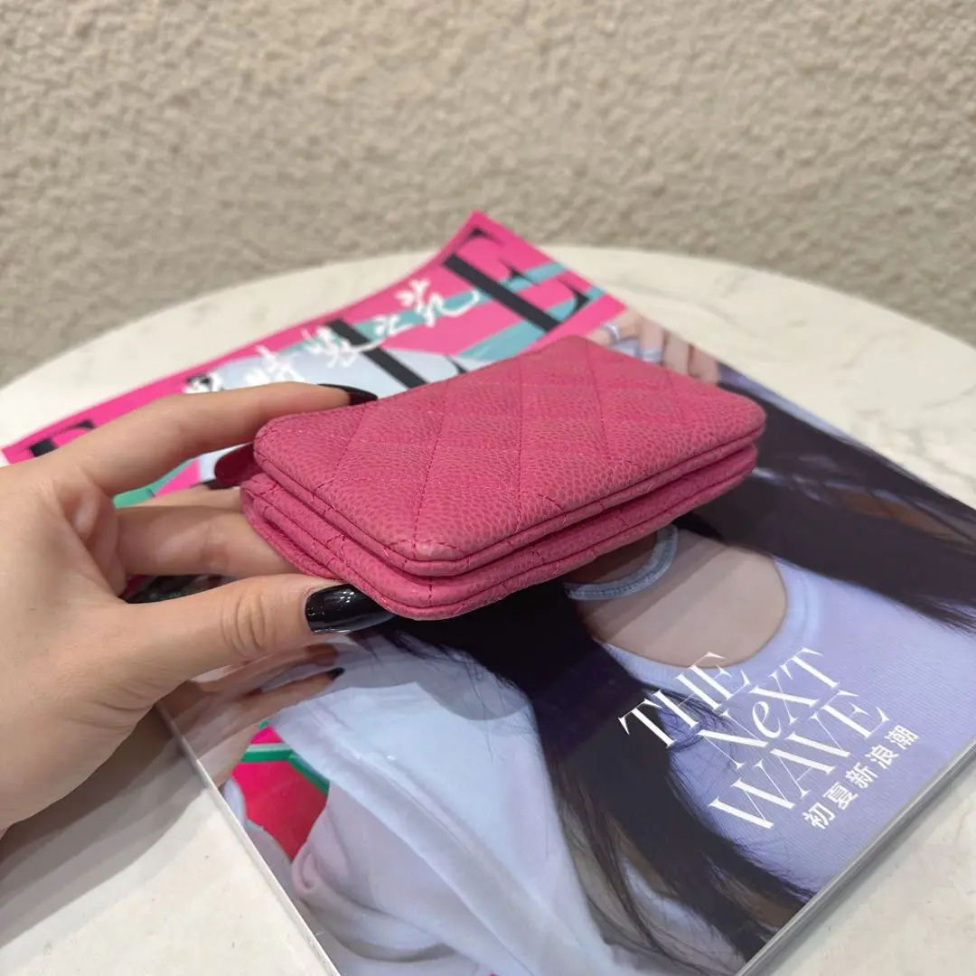 【商品详情】正品二手 Chanel CF 粉色 银扣 荔枝纹牛皮 钱包🥖95新 13*8 镭射17开。包身正常使用感。个性甜美 多巴胺色系