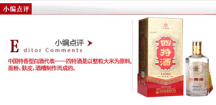 四特酒1898纪念版特香型白酒52度500ml/1瓶/2瓶装