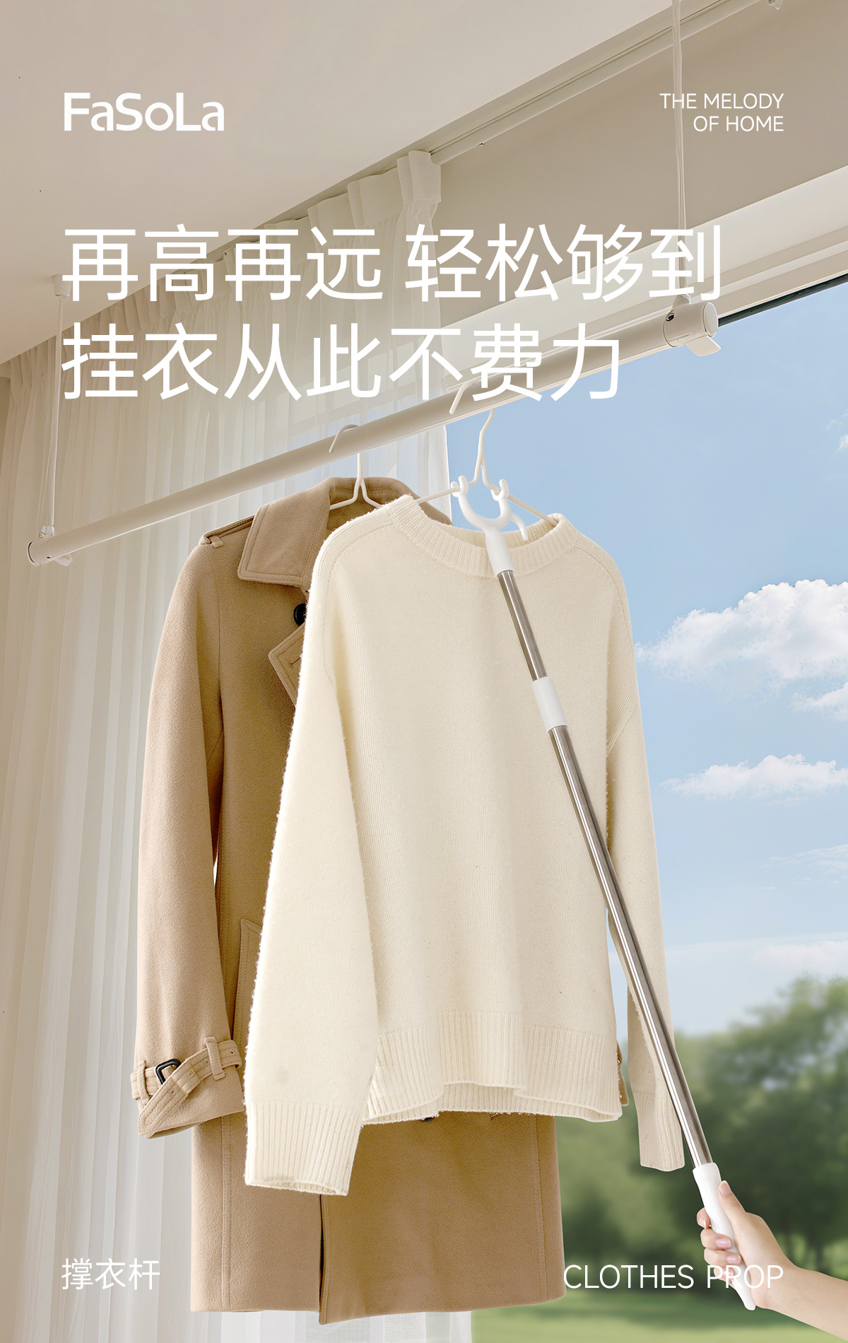 FaSoLa家用晾衣杆叉丫取衣服凉衣捍衣叉杆可伸缩撑衣杆