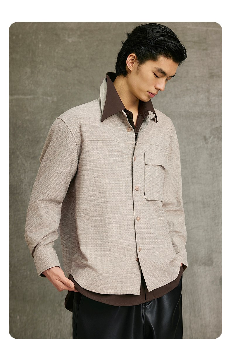 GXG男装 卡其色小香风宽松时尚长袖衬衫25年春季热卖G25X031033