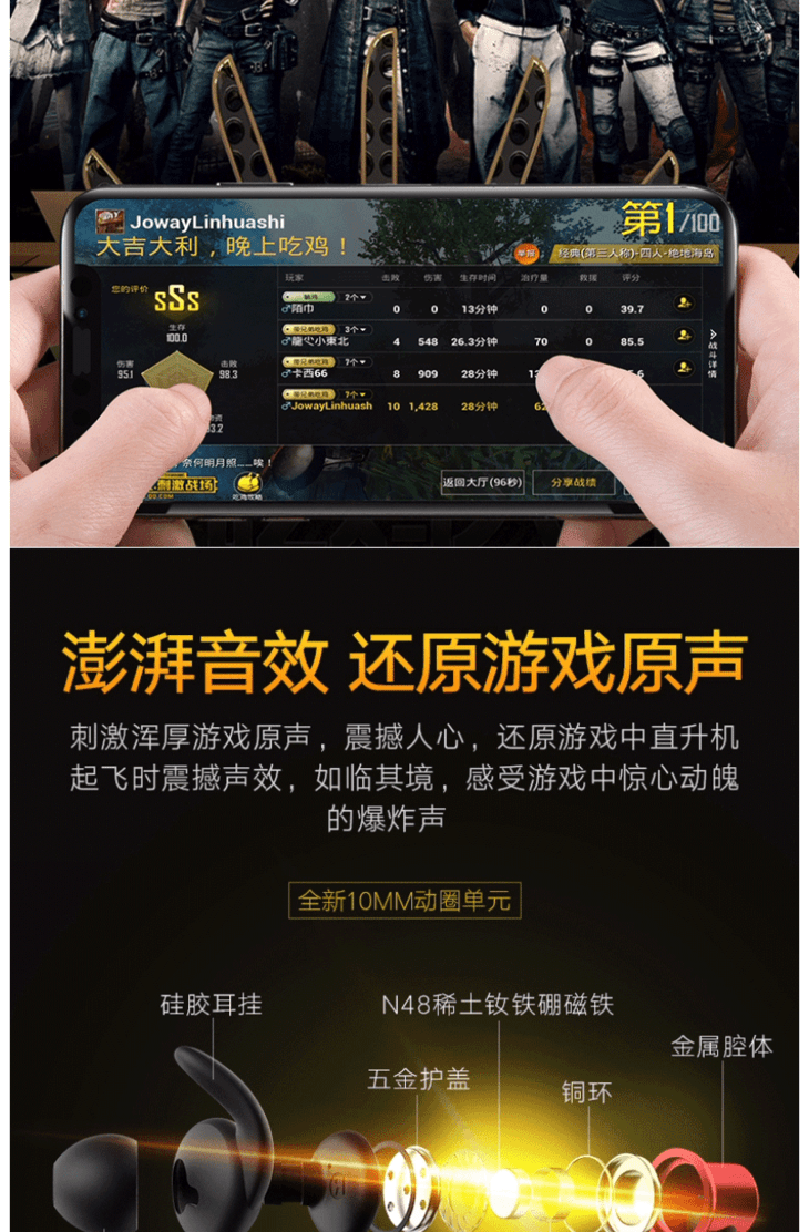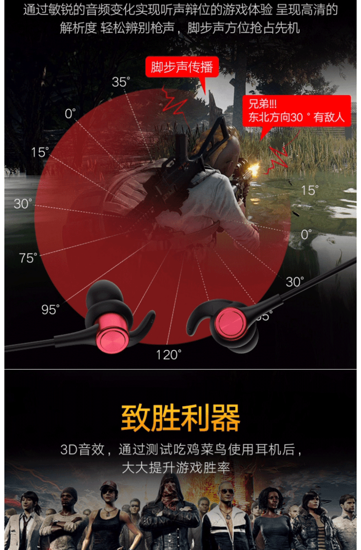 JOWAY乔威 蓝牙游戏耳机吃鸡神器 无线入耳式 手机通用外挂 H32吃鸡3D游戏蓝牙耳机