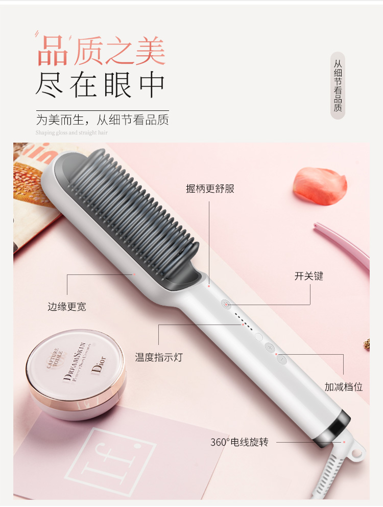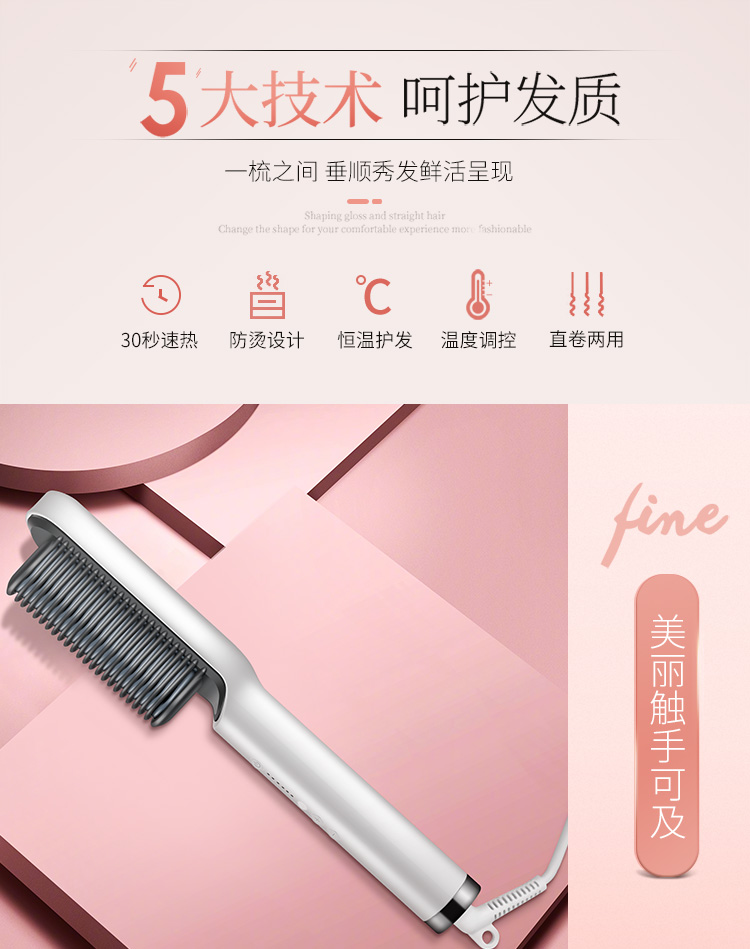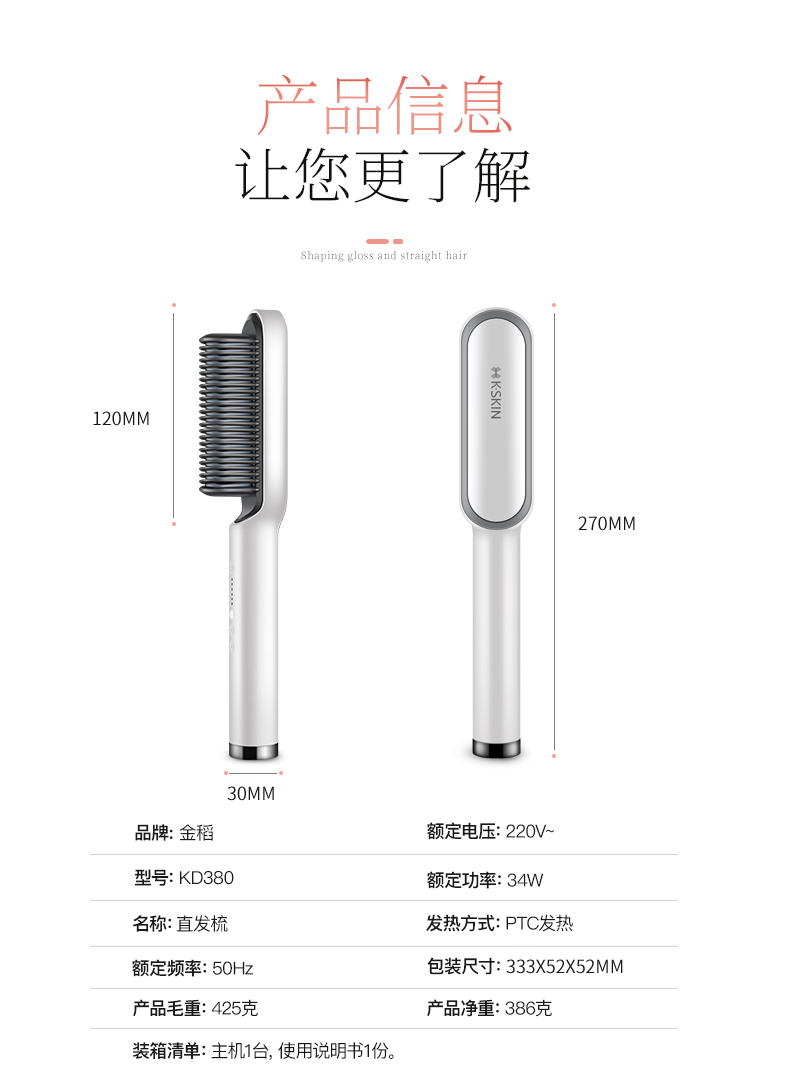 金稻(K-SKIN)直发梳 卷发棒 卷直发器 卷直两用 直发梳夹板 美发护发梳子 60s快速造型梳 KD380白色