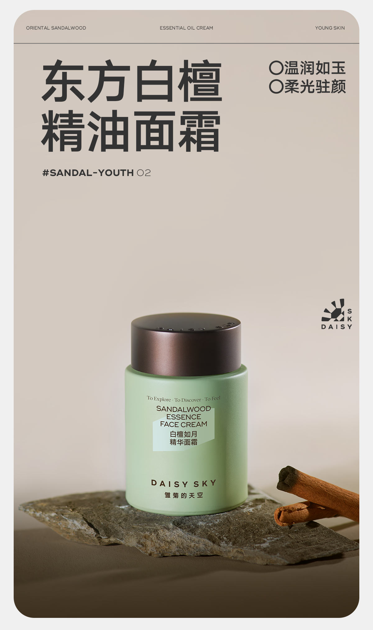 【品名】DAISY SKY雏菊的天空白檀如月精华面霜