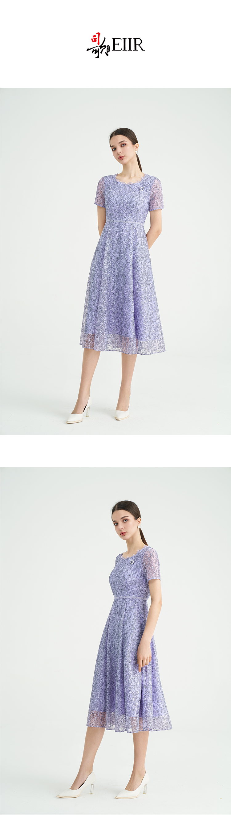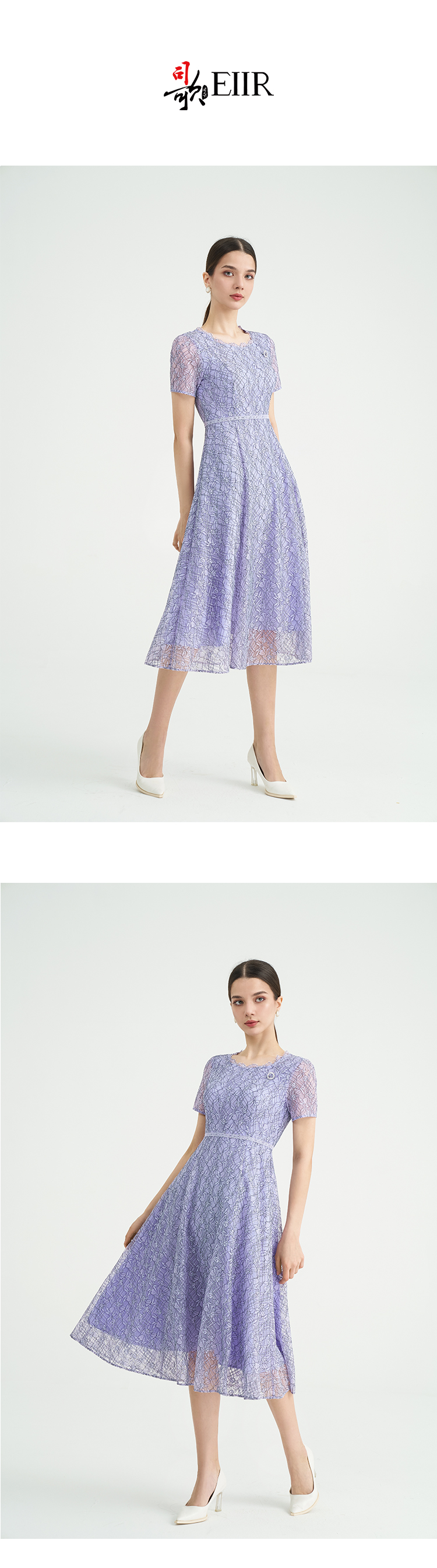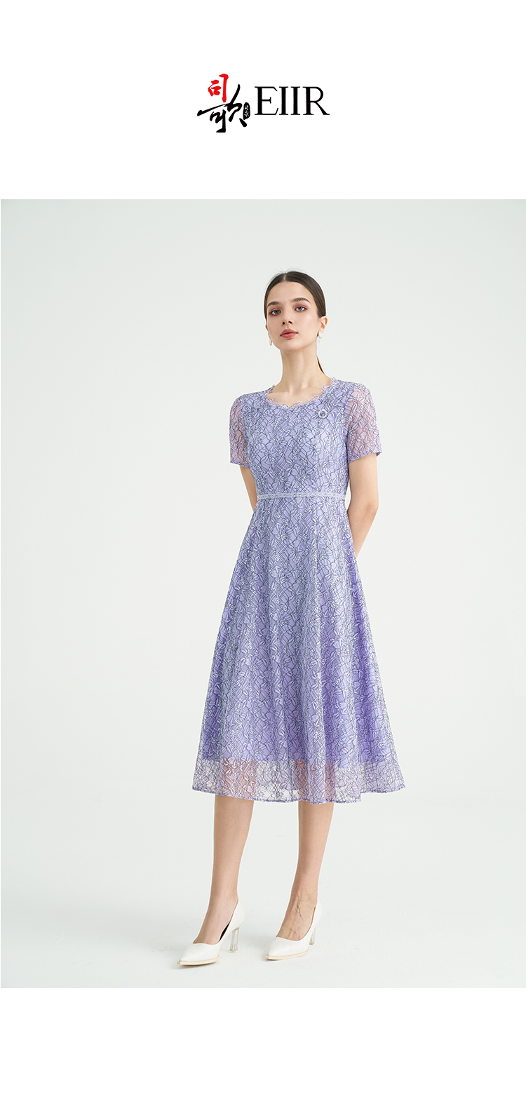 司歌蕾丝显瘦短袖连衣裙大圆领气质A891248X