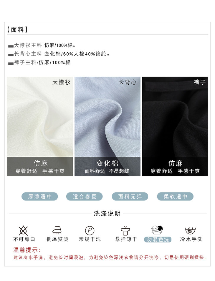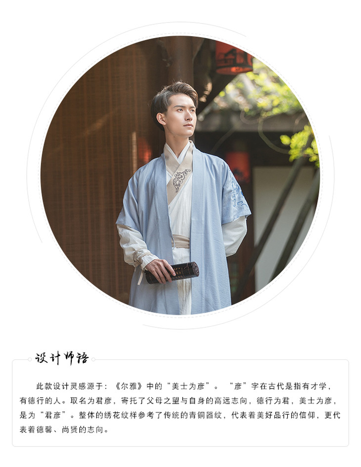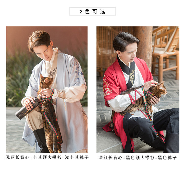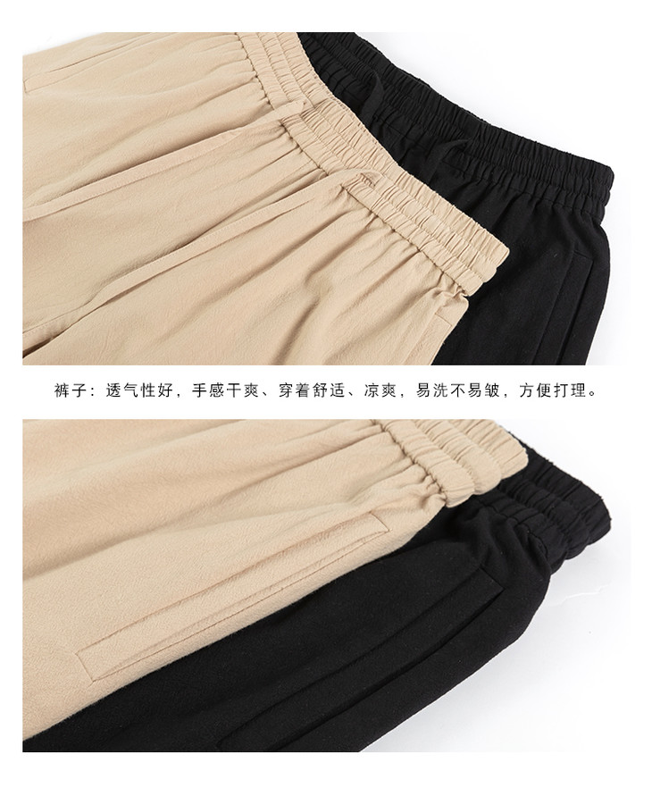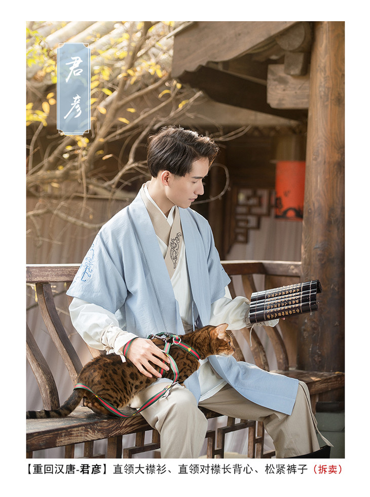 君彦原创汉服男装春夏长半臂短打上衣松紧裤子套装中国风