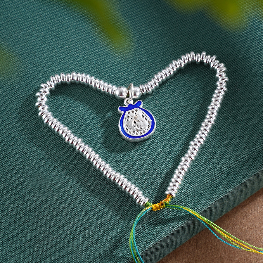 子佩集S925银【盛福】手链【SL01045】纯银钱串腰缠万贯珐琅彩福袋盘缠盘缠2504