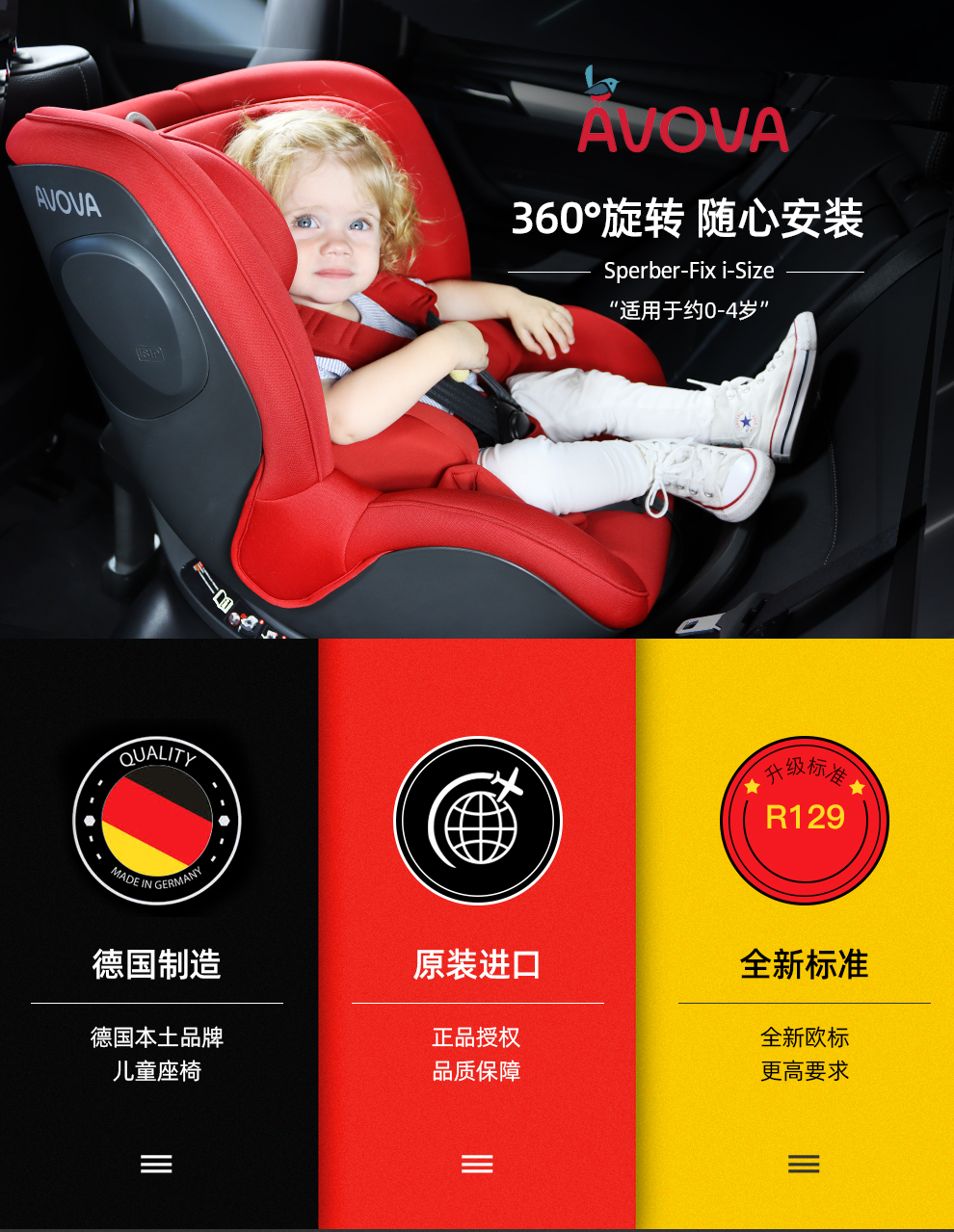 AVOVA小旋风斯博贝婴儿儿童汽车安全座椅0-4-7岁360度旋转躺角