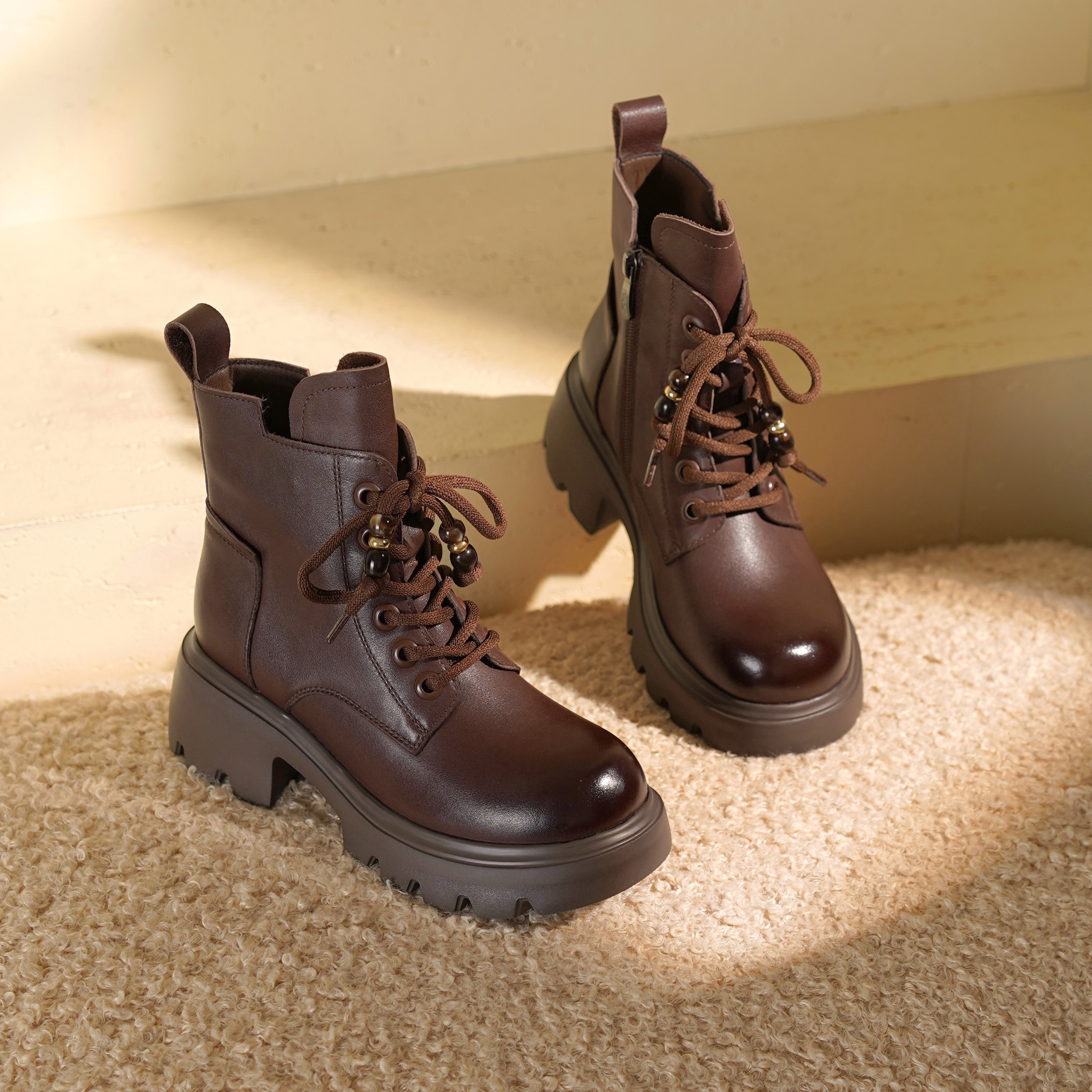 西村名物2025年冬季新款厚底增高防滑系带英伦风帅气马丁靴T25DS49461