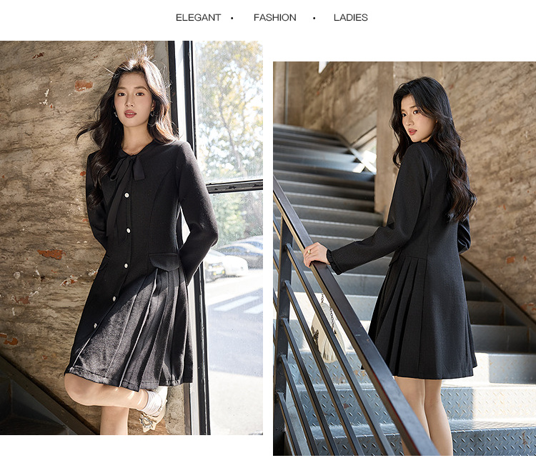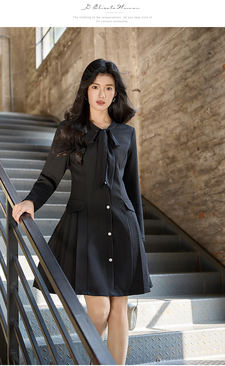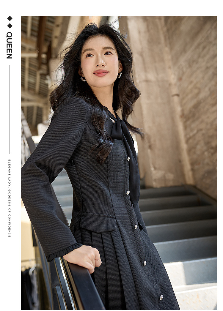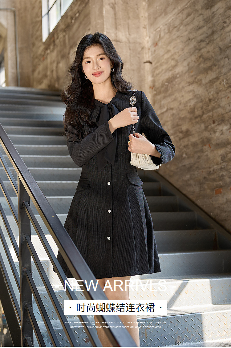 奢姿大码女装2025冬季减龄蝴蝶结连衣裙胖妹妹纽扣时尚轻奢裙子