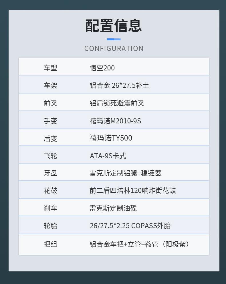 LAUX/雷克斯 悟空200土坡车铝合金车架单盘9速120响四培林花鼓