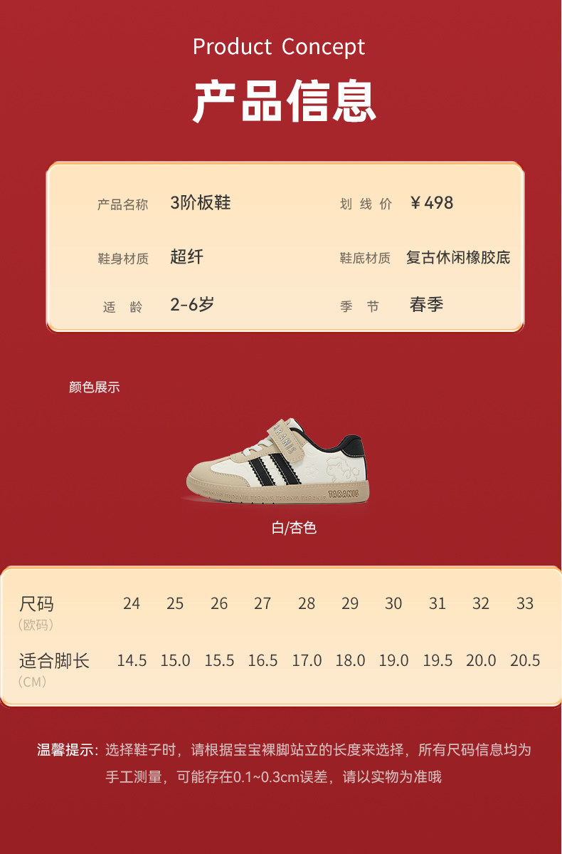 泰兰尼斯童鞋2026春季新款儿童新年德训鞋男童运动鞋女童休闲板鞋T02X6A8713
