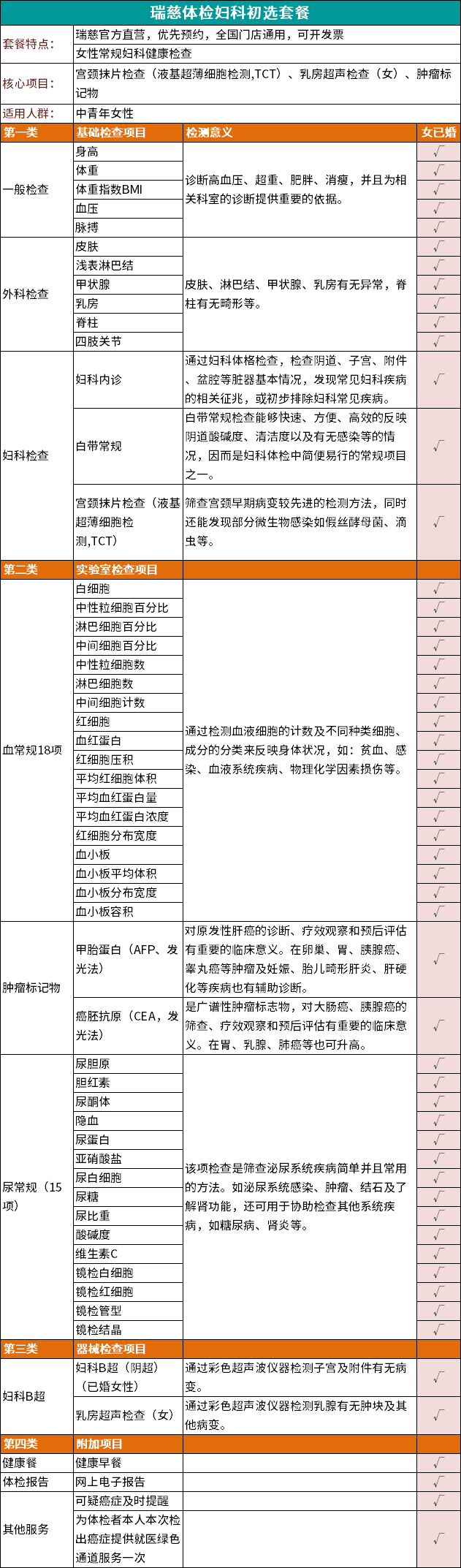 瑞慈体检妇科初选套餐
