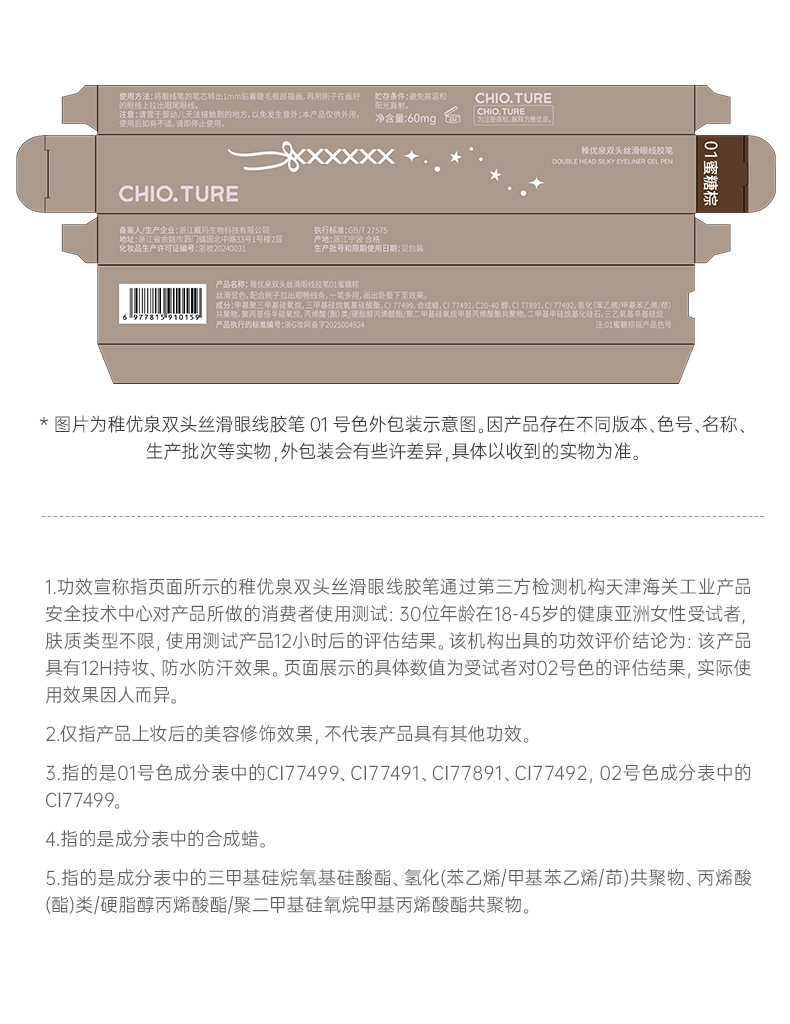 稚优泉(CHIOTURE)双头丝滑眼线胶笔防水防汗持久不易晕染点痣棕色