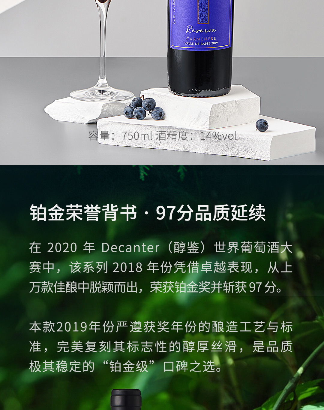 【铂金奖+高分】智利1号限量珍藏卡曼纳干红2019