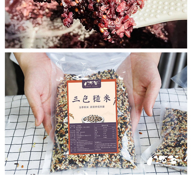 三色糙米煮之前洗净,用清水浸泡3个小时左右,然后直接放入电饭煲,开启煮饭模式即可
