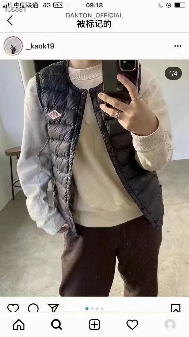 DANTON定番情侣超轻鹅绒马甲 90%鹅绒