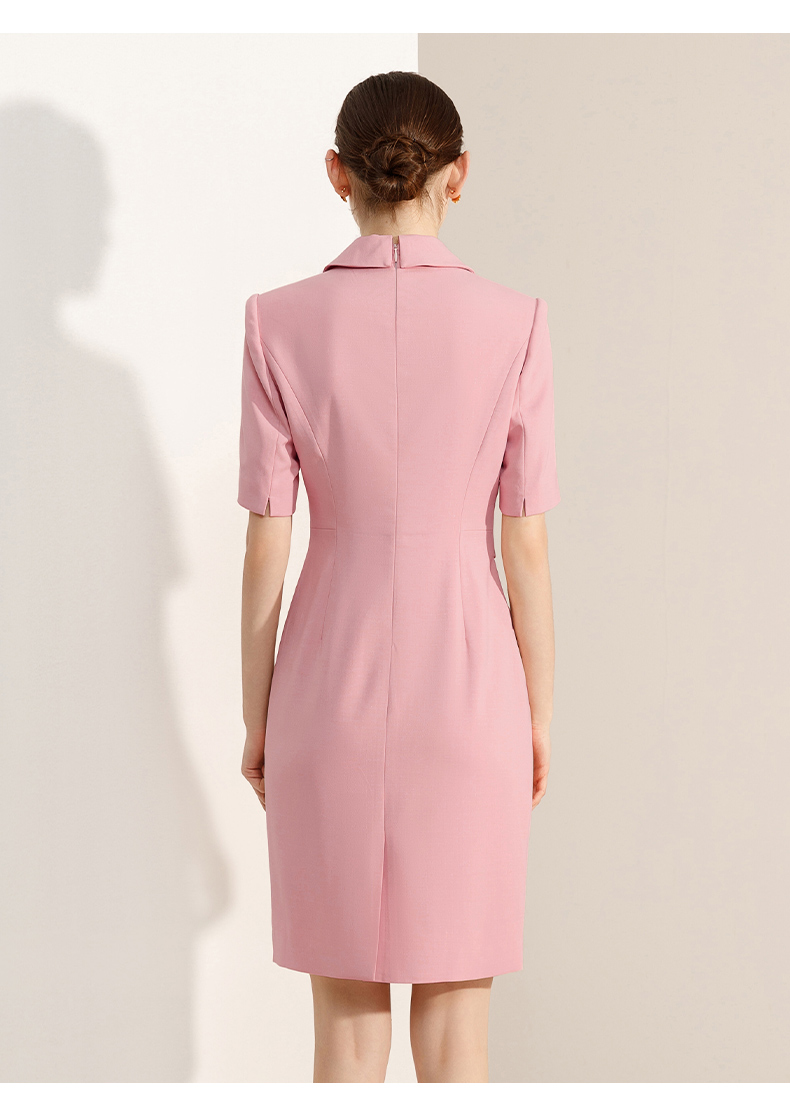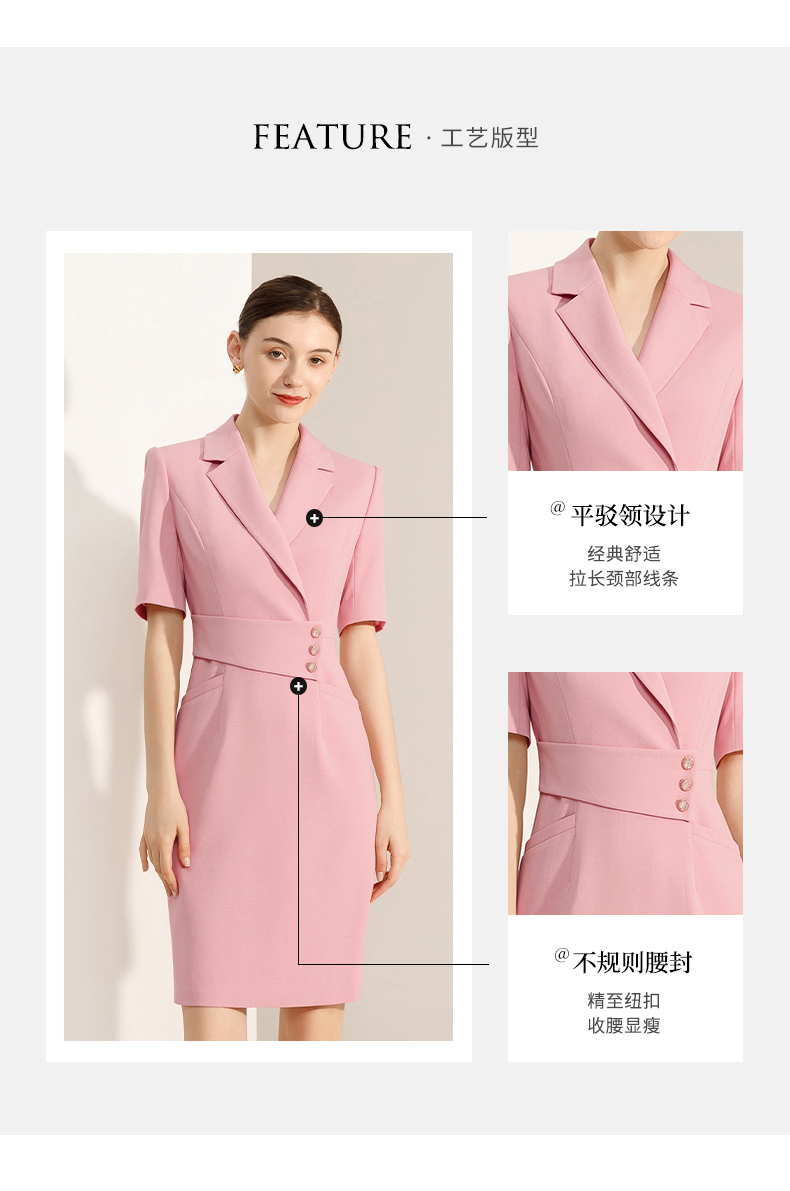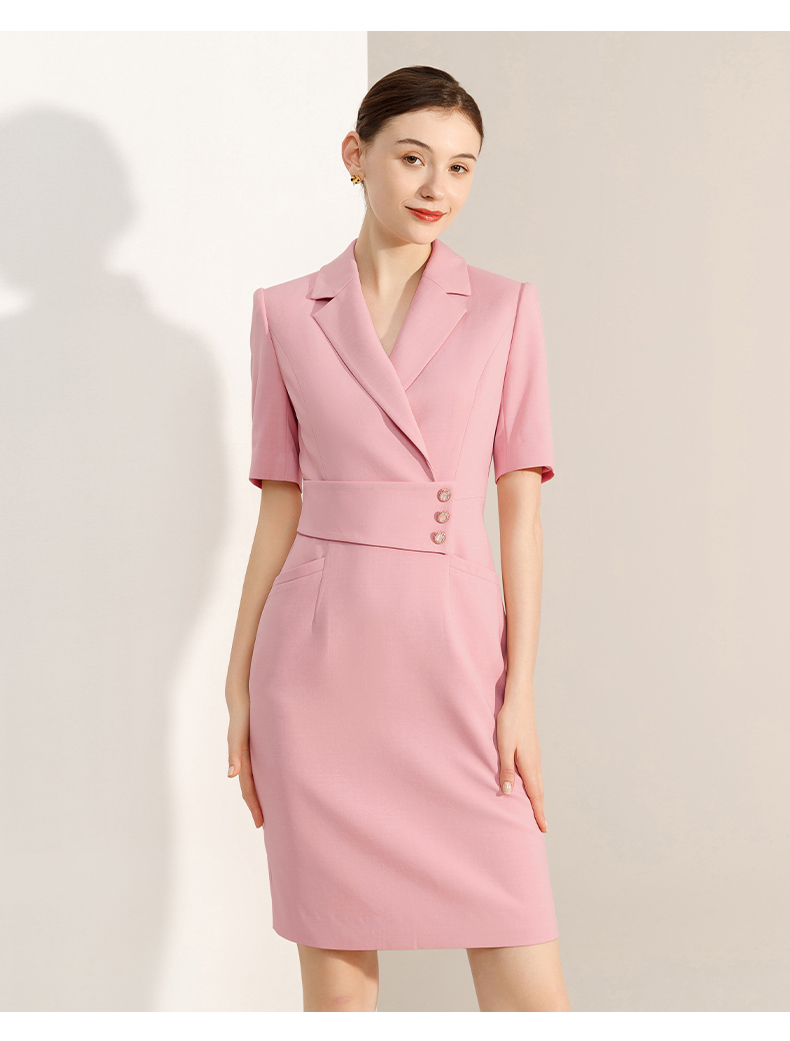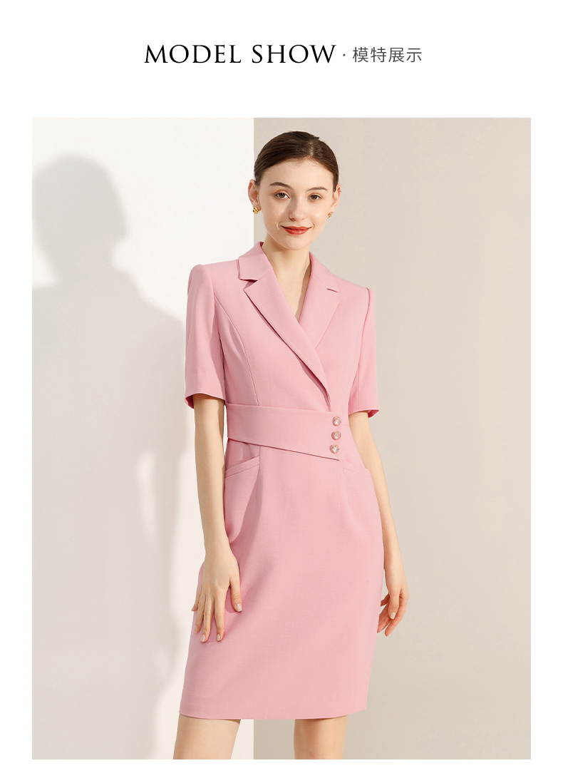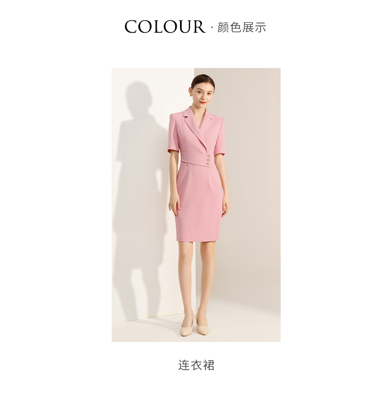 IWY/女神范简约粉色职业装连衣裙夏女装设计感知性优雅通勤包臀裙23Q263