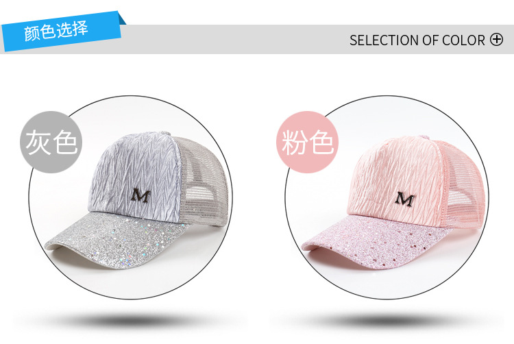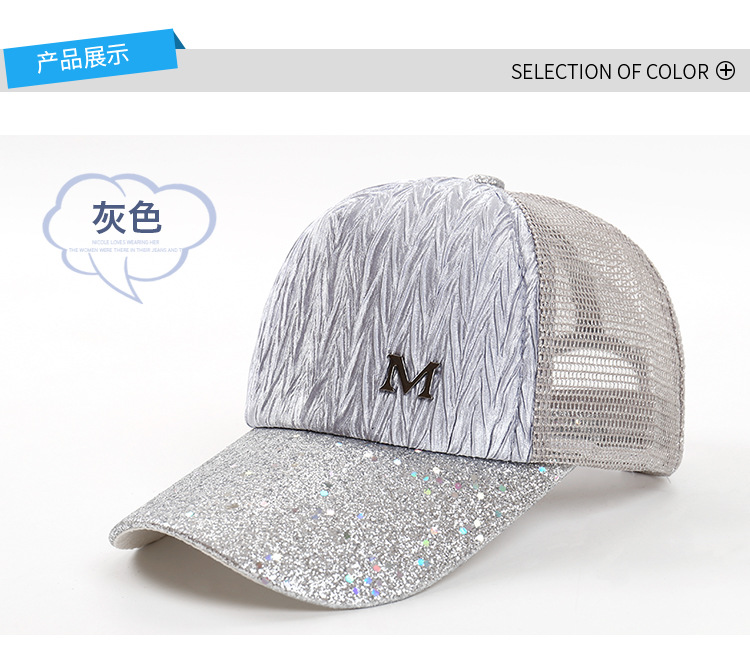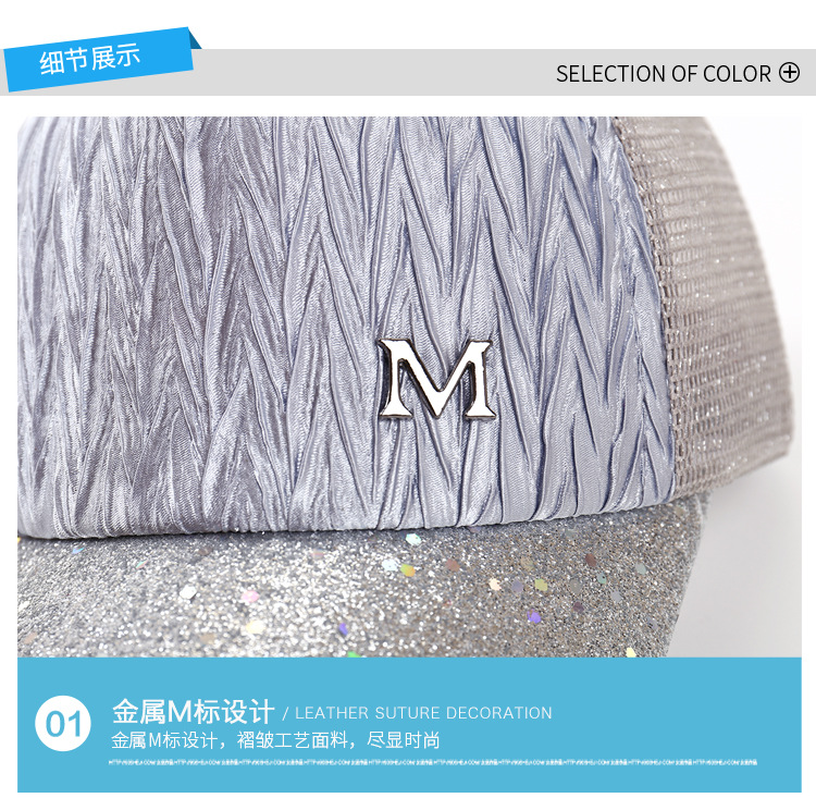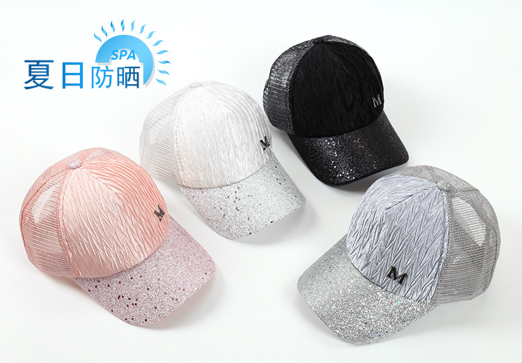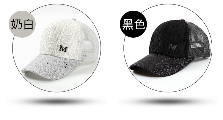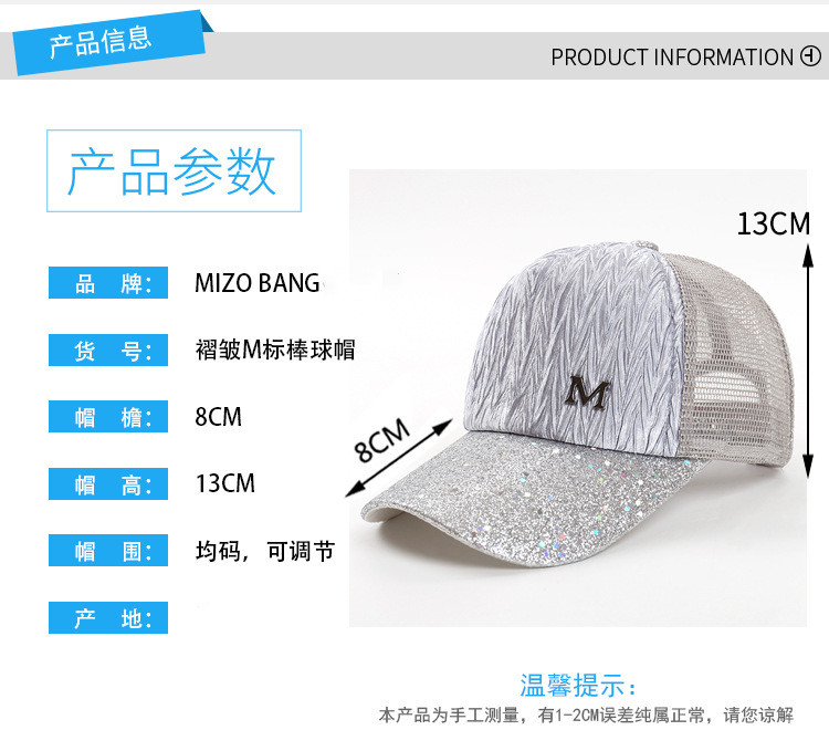 新款褶皱M标棒球帽户外遮阳鸭舌帽韩版太阳帽