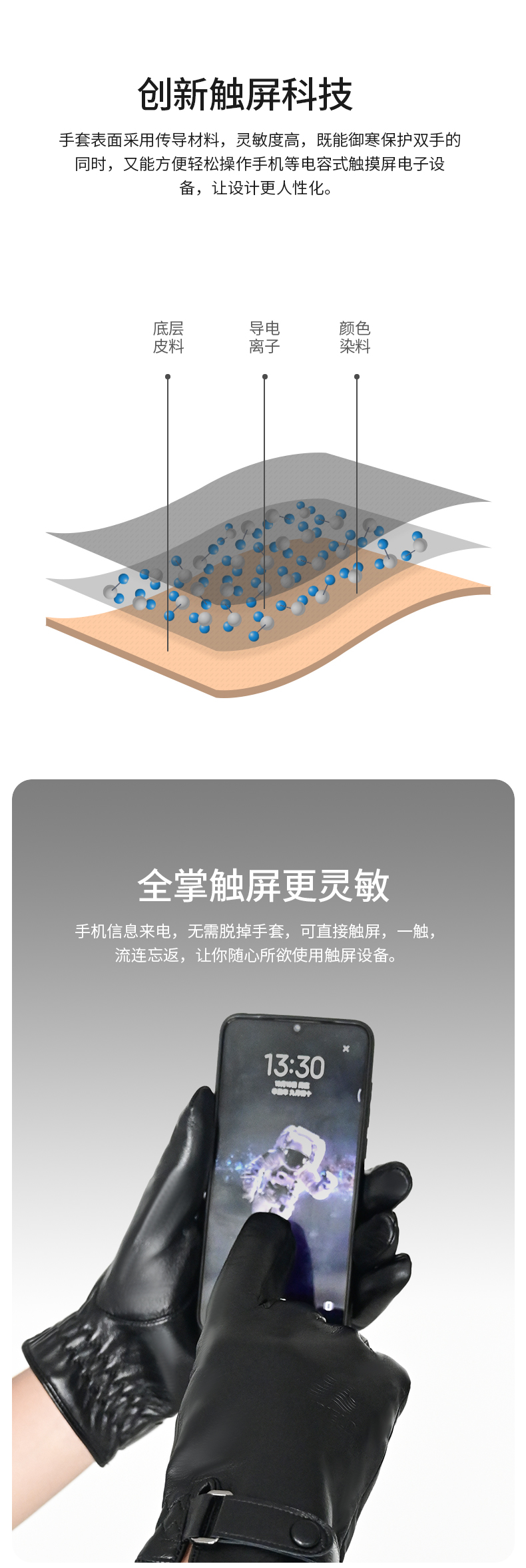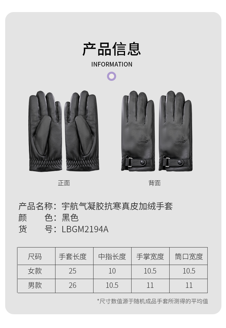 Supield素湃黑科技宇航气凝胶保暖系列真皮手套