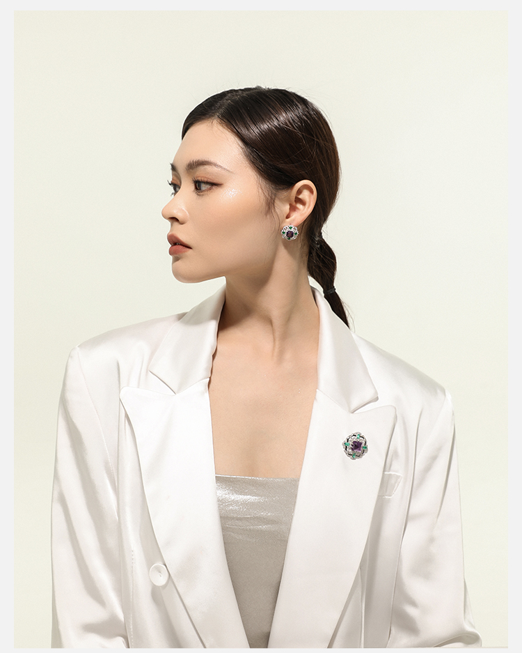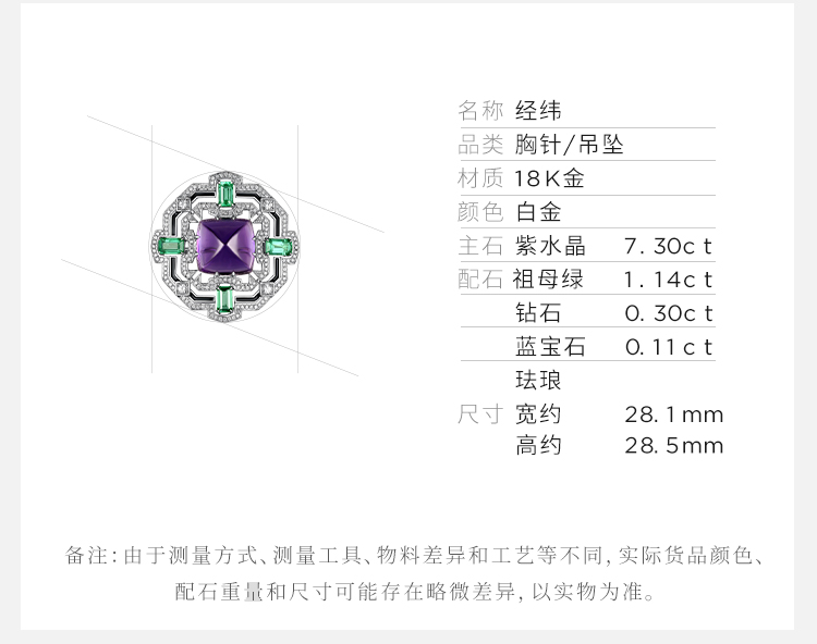 【经纬】JULEE JULEE茱俪珠宝 18K白金 紫水晶 祖母绿 白蓝宝钻石吊坠/胸针两用款