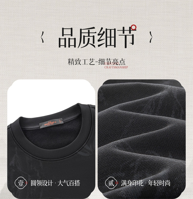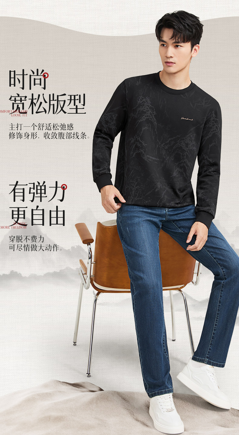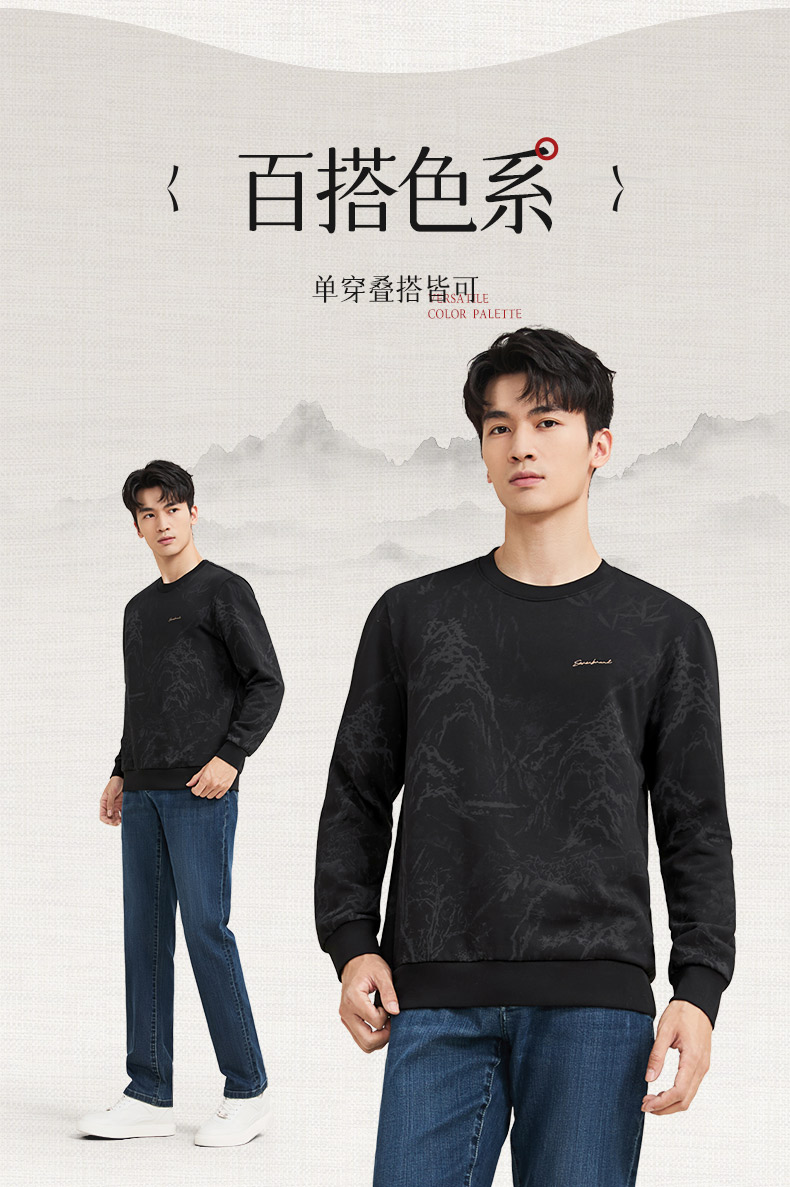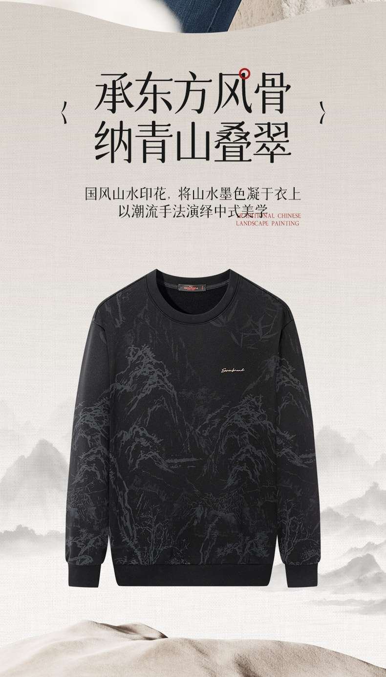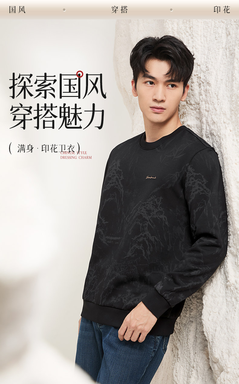 【国风满印卫衣】柒牌男装2025秋季长袖套头卫衣磨毛山水印花上衣129W70500